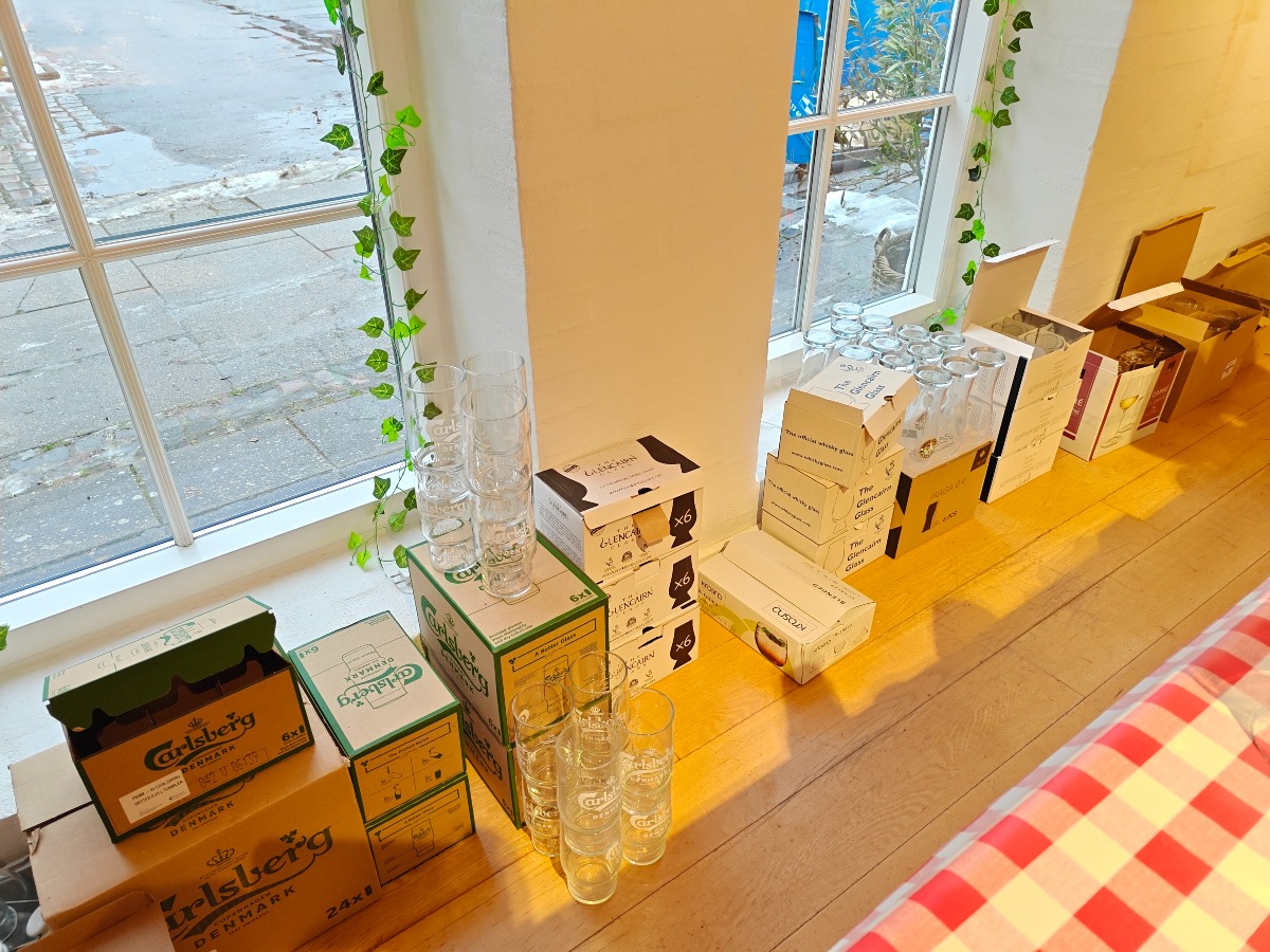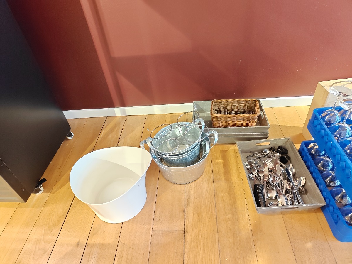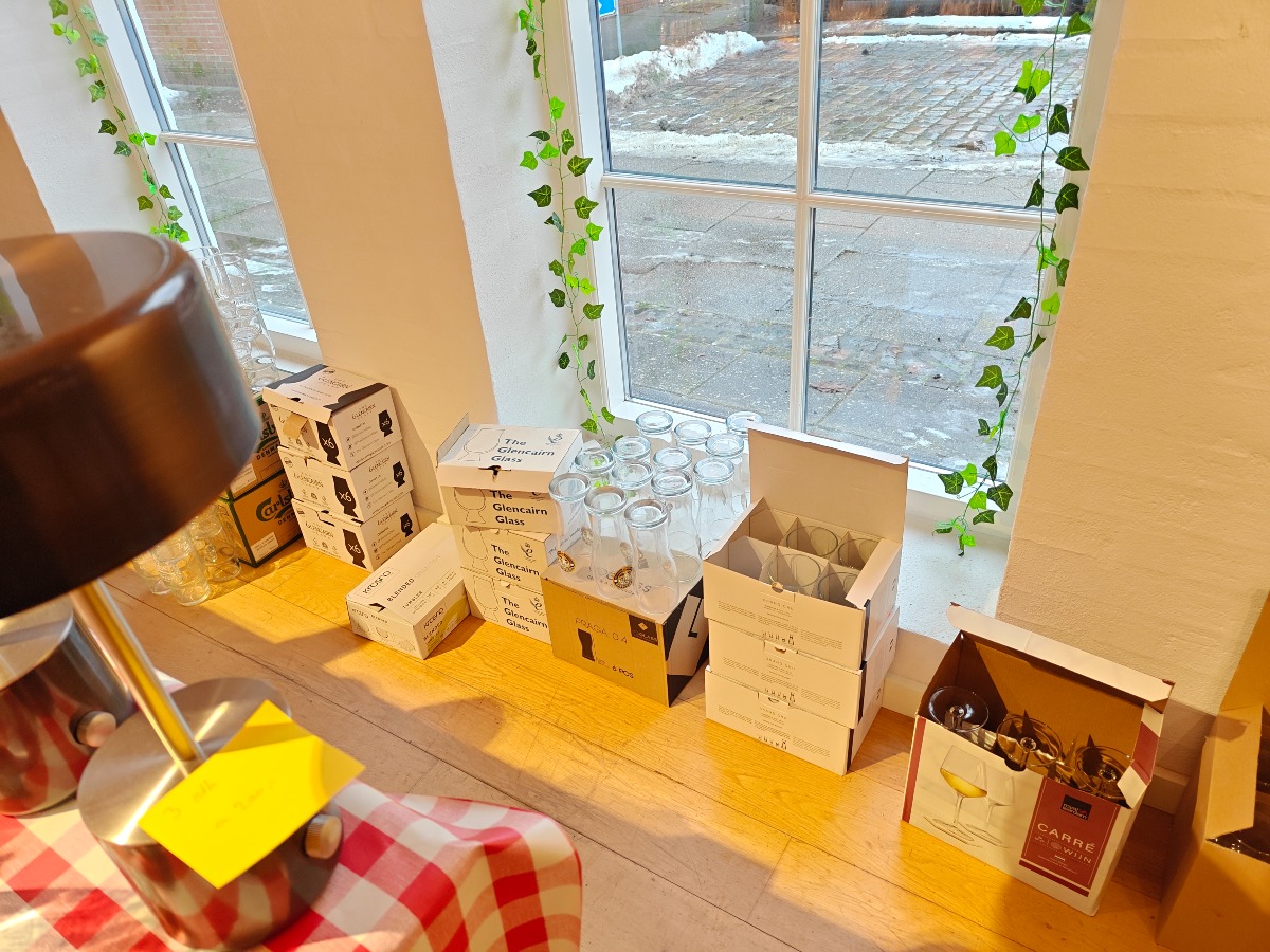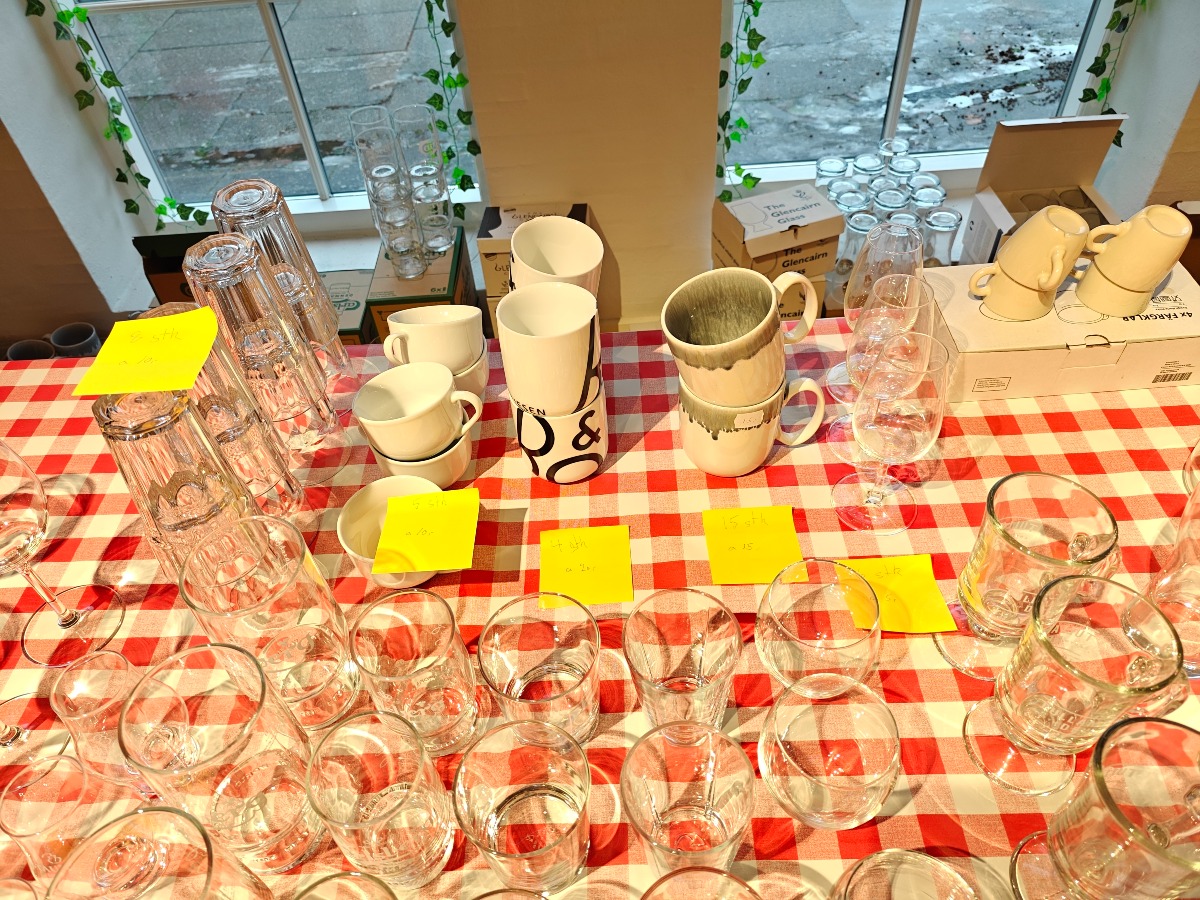 Stort lot. med glas og service. Mange dele. Alt fra vinkølere, lamper, mange forskellige glas, lidt service, bestik m.m. Alt skal rydes.