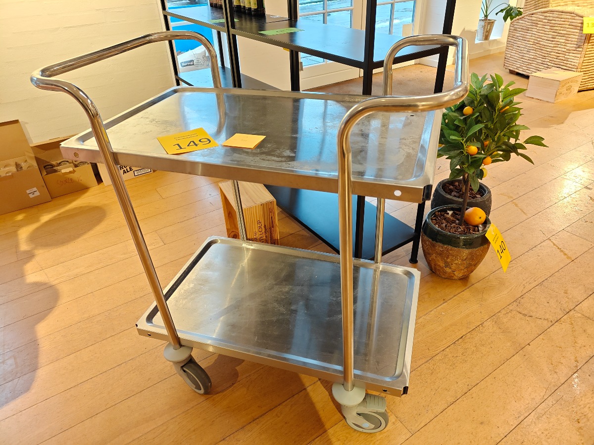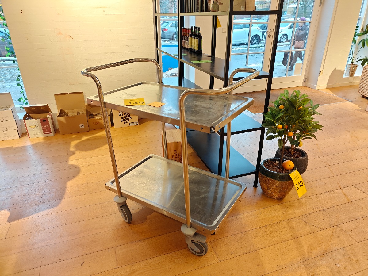 Metal rullebord med 2 hylder. H. 100, B. 90, D. 55 cm.