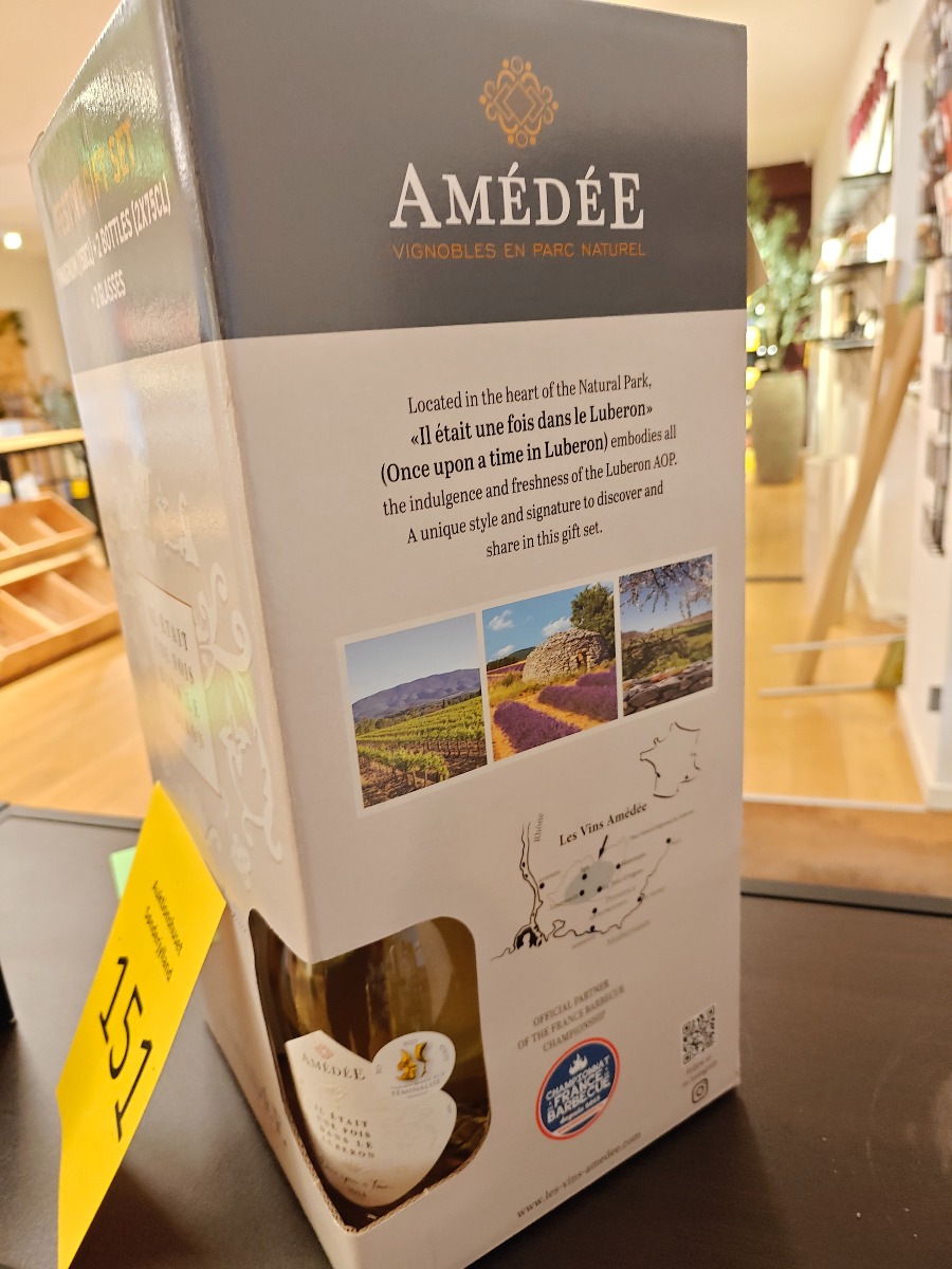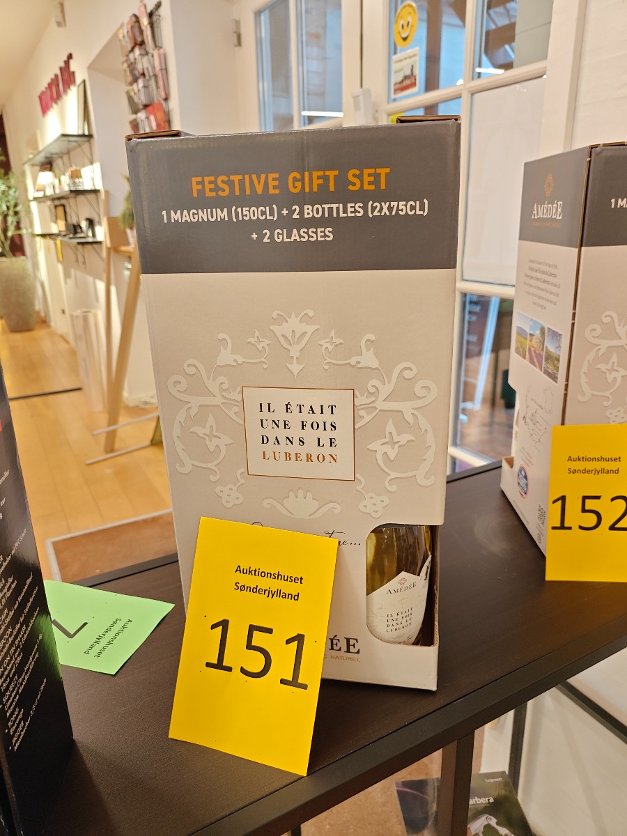 Amédée festive gift set. Indeholdende 2 flasker hvidvin samt magnumflaske rosé og 2 glas.