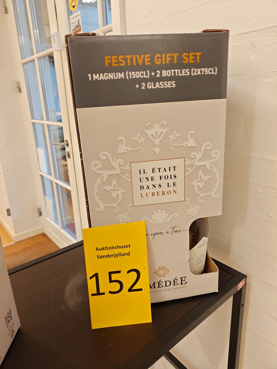 Amédée festive gift set. Indeholdende 2 flasker samt magnumflaske rosé og 2 glas.