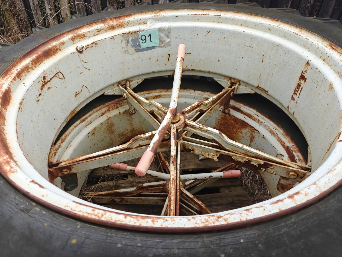 1 Sæt tvillingehjul. 5-armet. Dæk: 13.6/12 x 38.