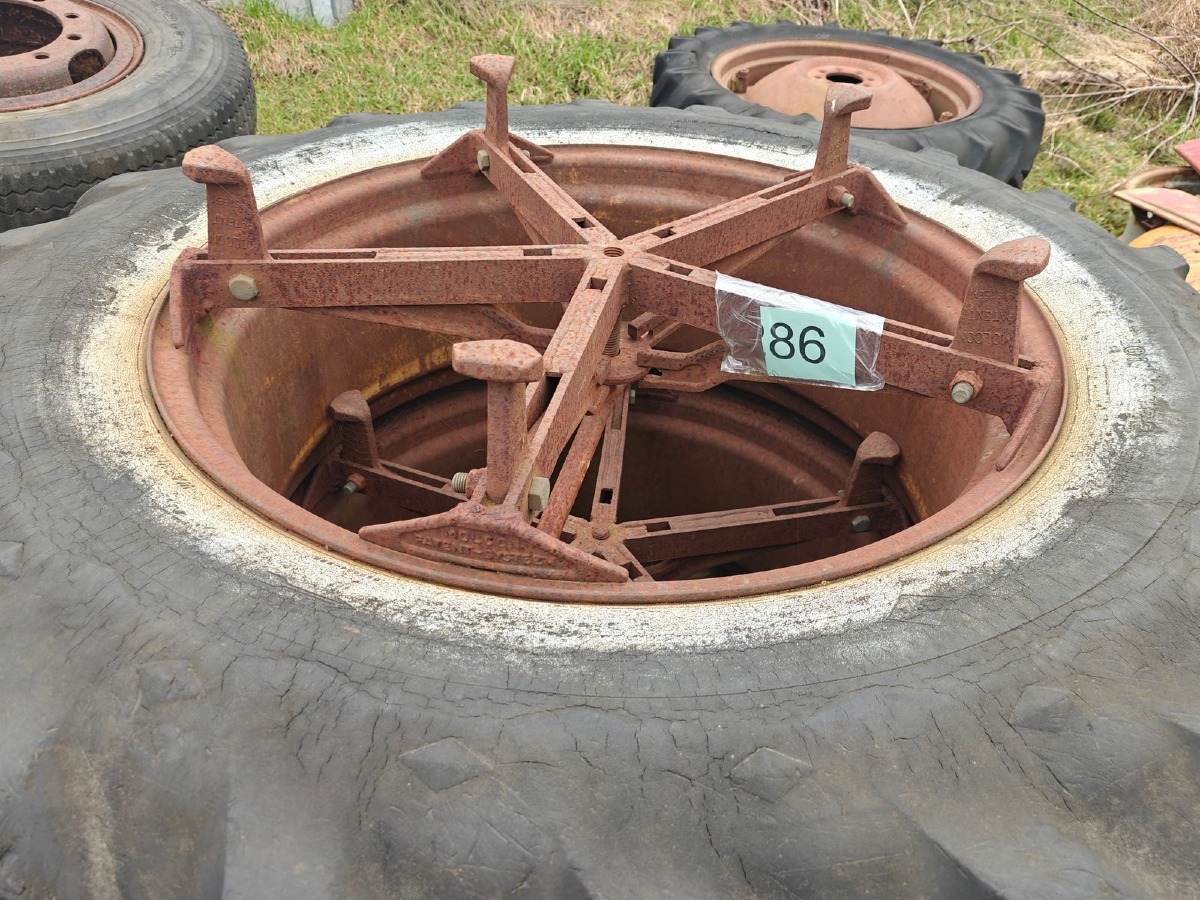 1 Sæt tvillingehjul. 5-armet. Dæk: 16.9 x 38.