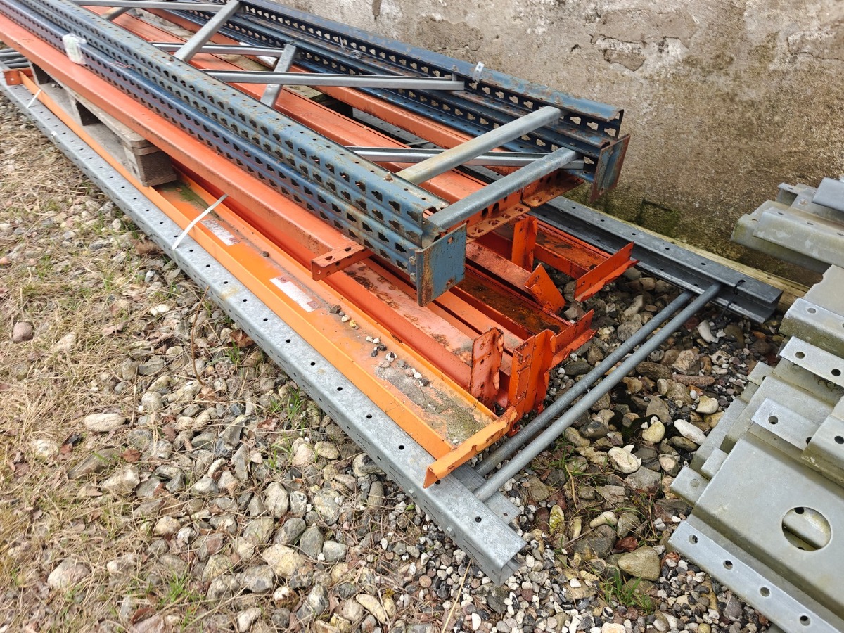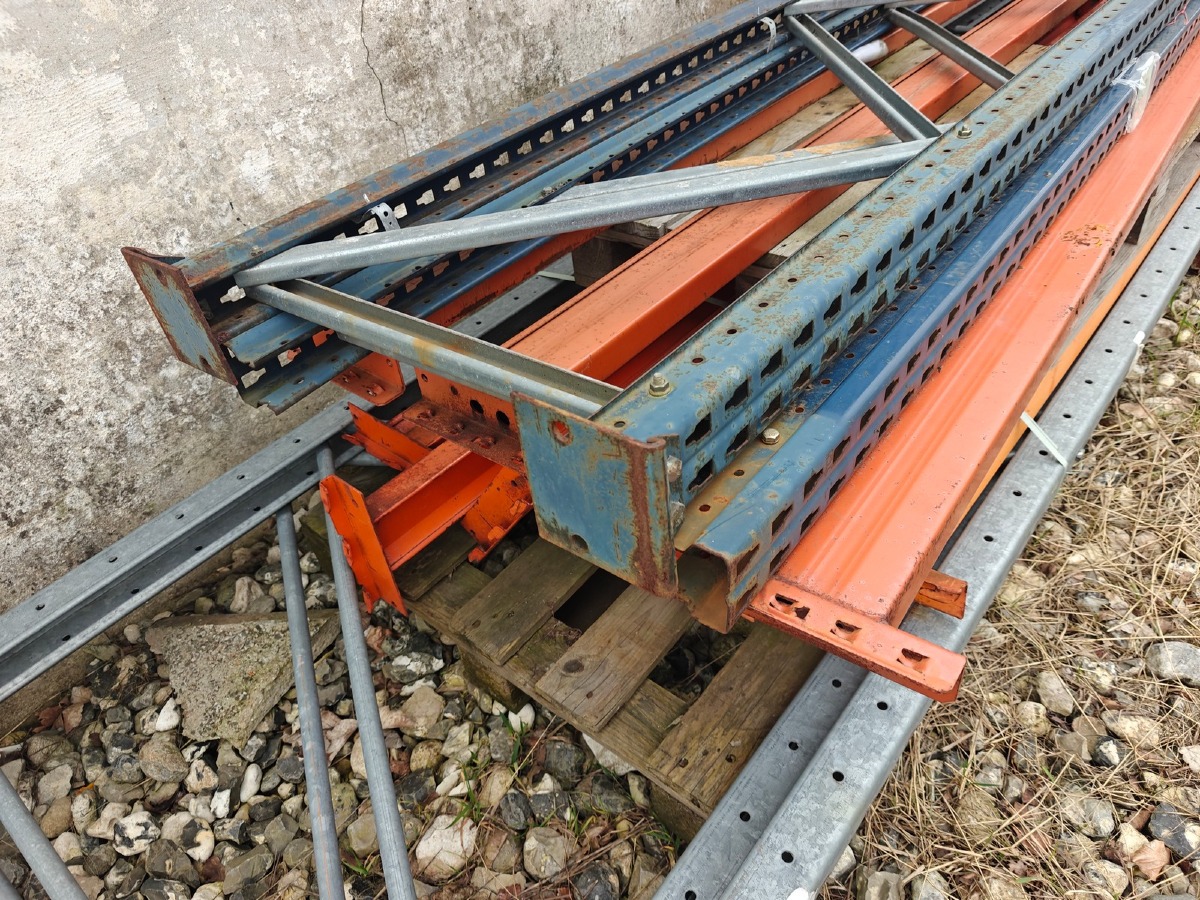 2 Pallereoler. 2 Typer. Hver reol med 1 fag. 1 Reol: H: 390 cm. B: 100 cm. 3 Bærelag: 285 cm. 1 Reol: H: 300 cm. B: 65 cm. 2 Bærelag: 270 cm.