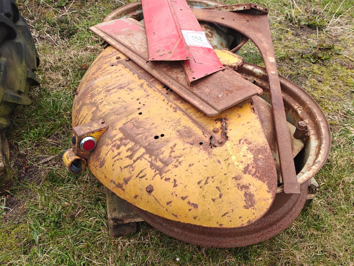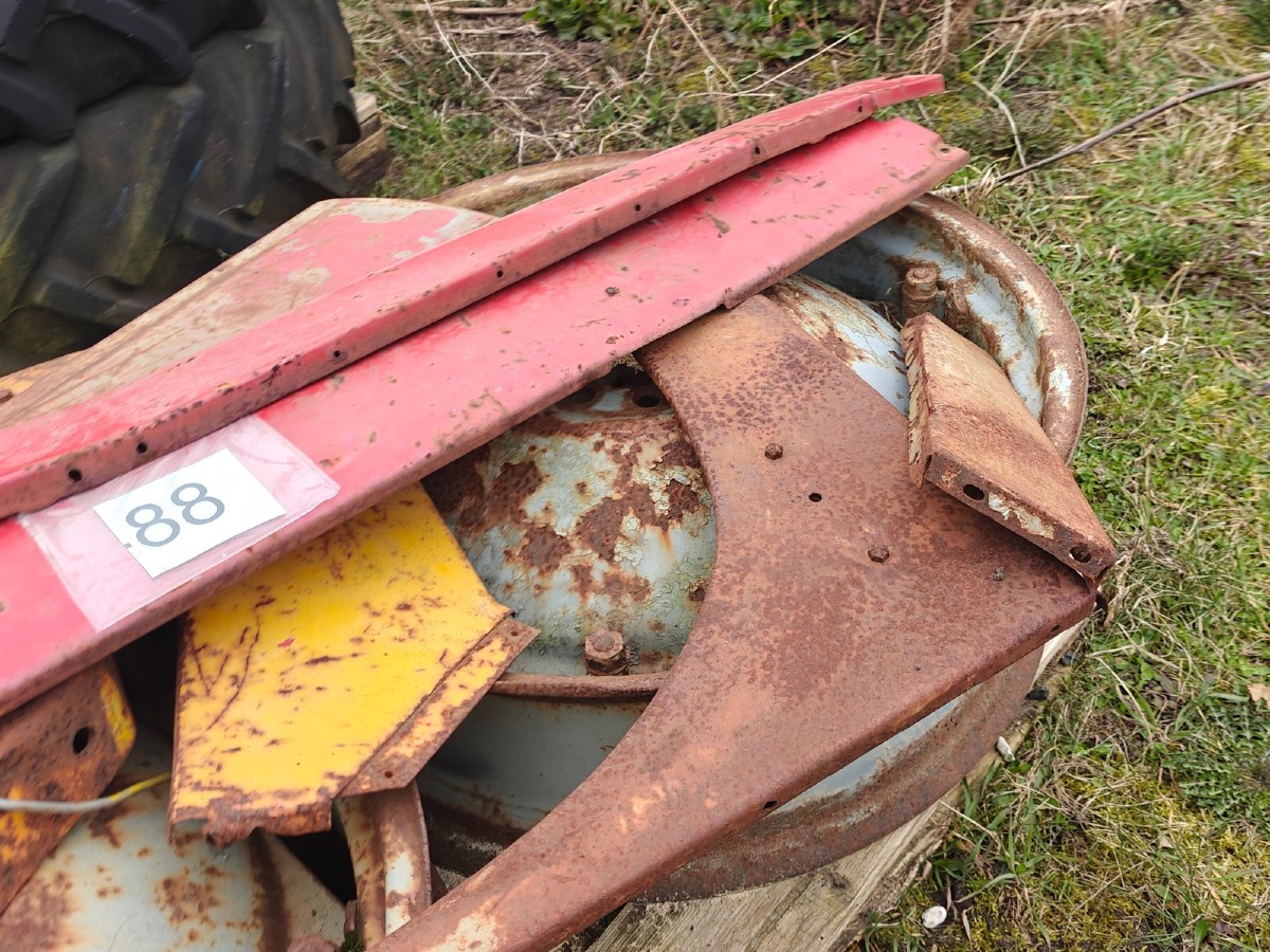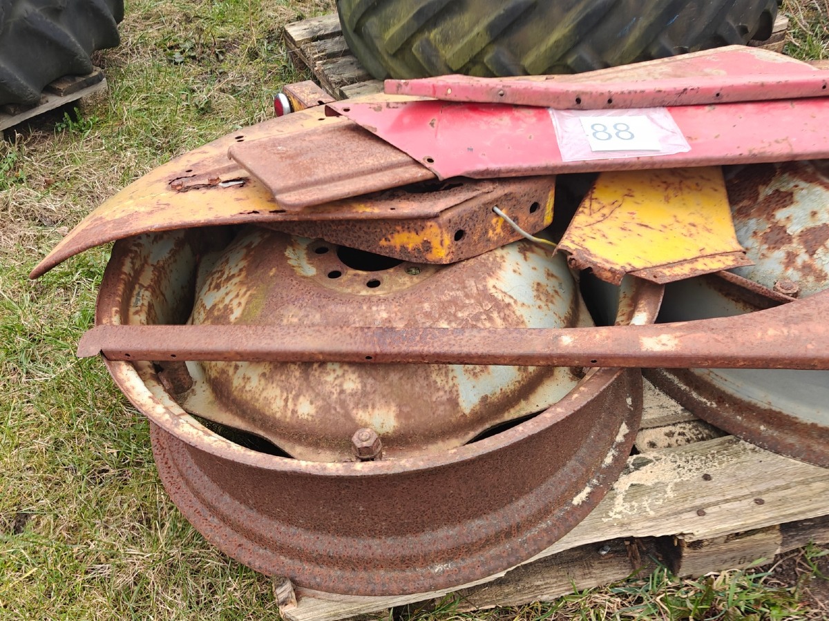 Hjul, fælge og pladedele t/Massey Ferguson traktor.