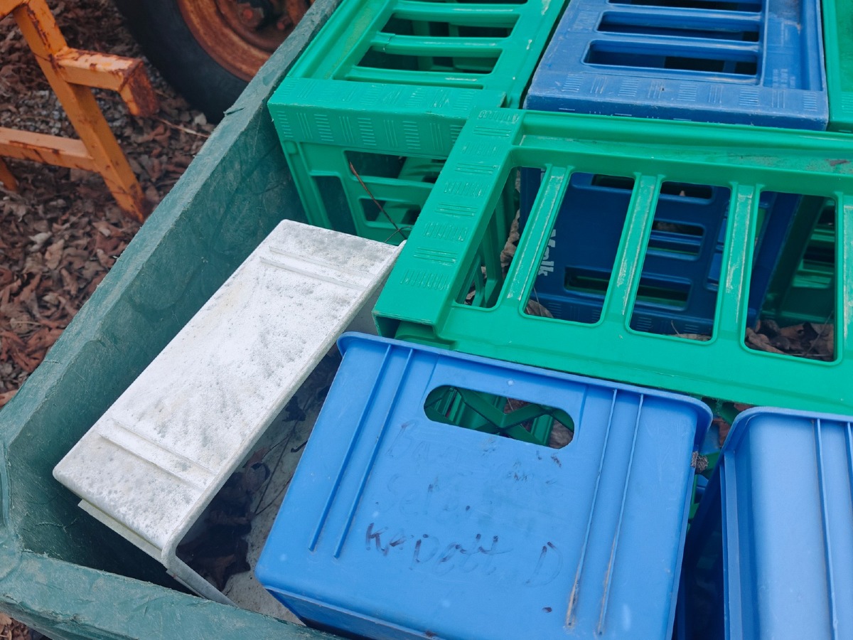 Plastpalle m/plast- og sortimentskasser.