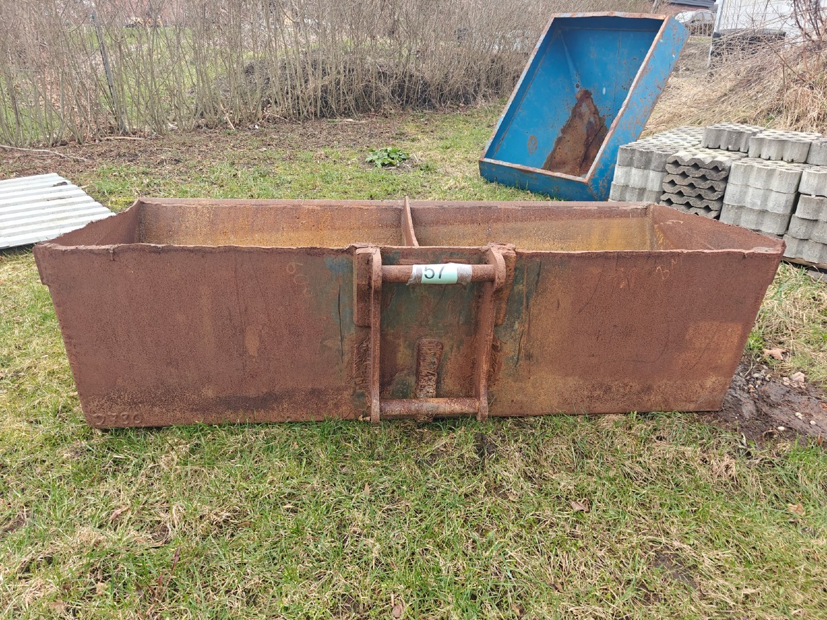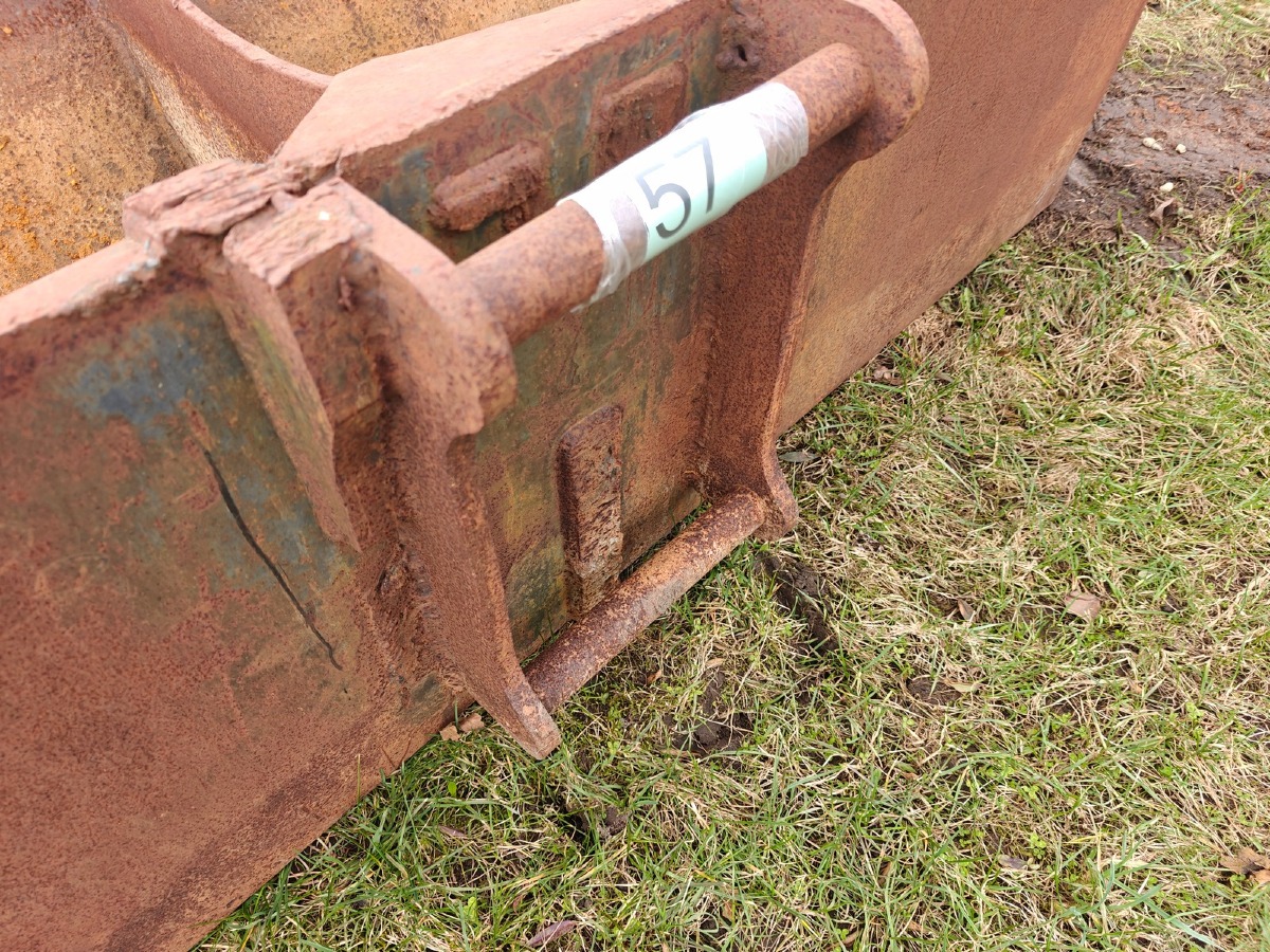 Skovl t/gravemaskine. Med beslag. Arbejdsbredde: 200 cm. B: 29 cm. Mål ml stænger: 43 cm (målt midte-midte).
