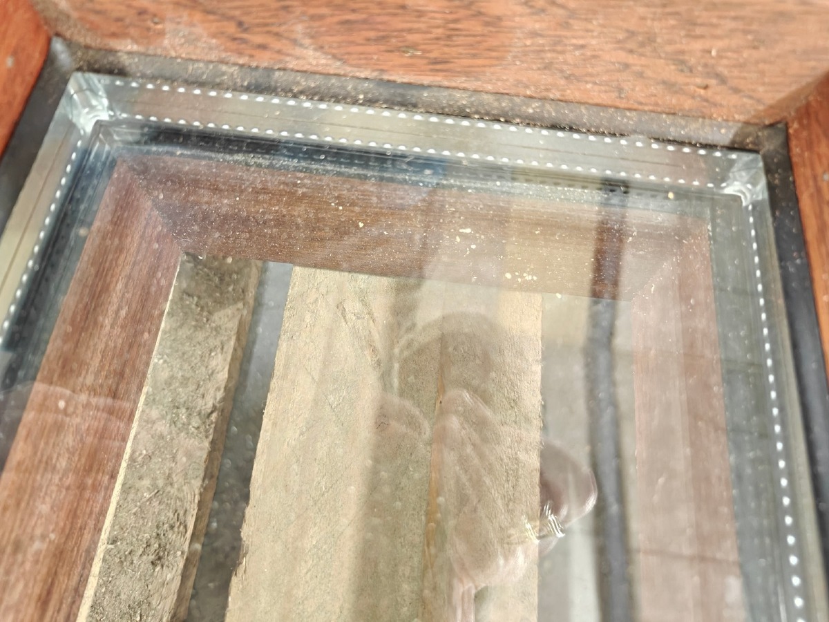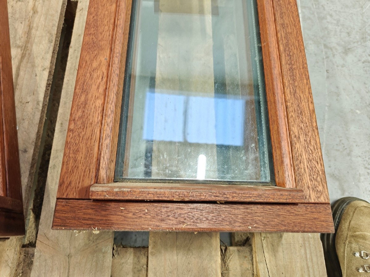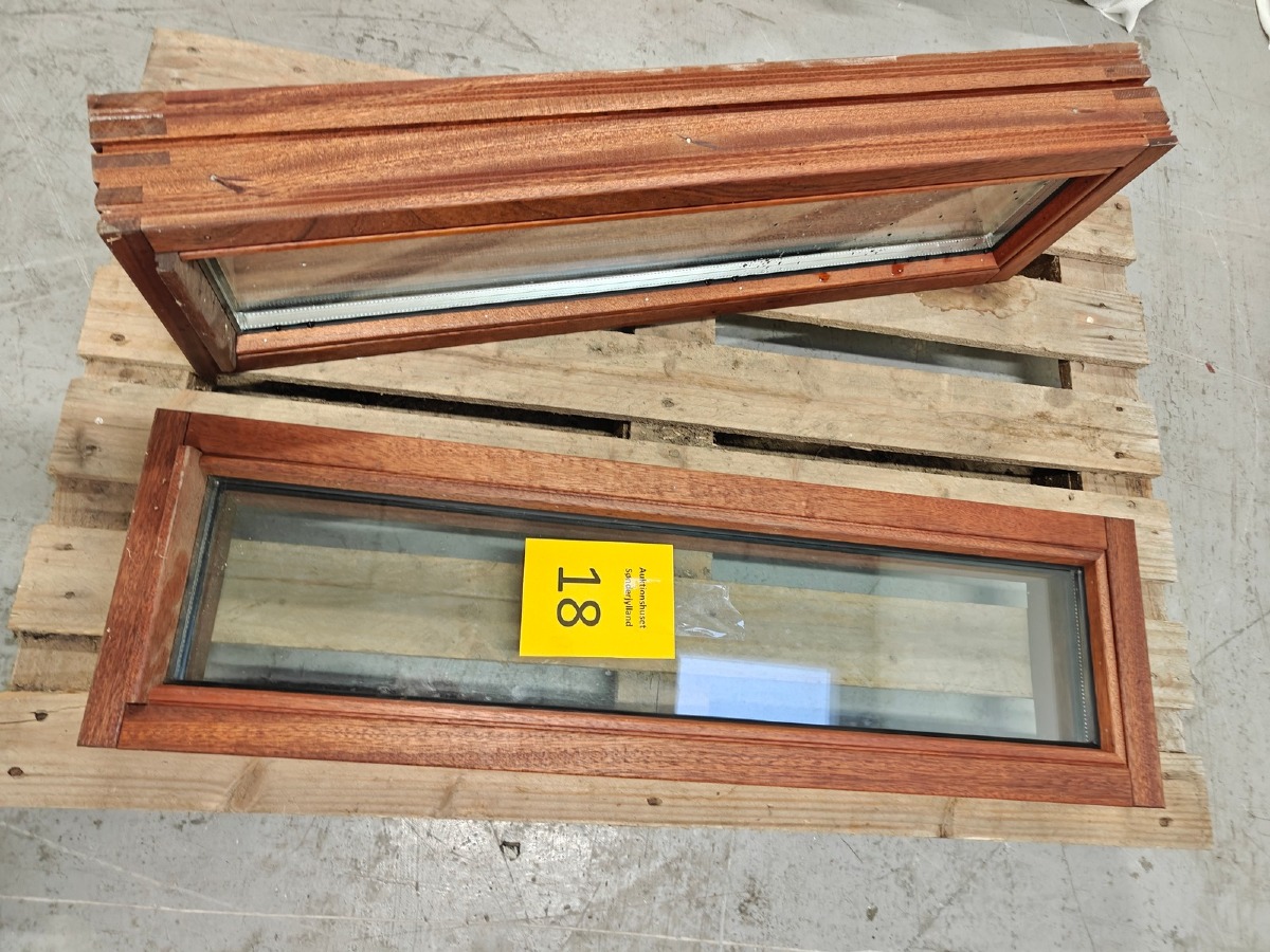 2 mahognivinduer. 93 x 28 cm.