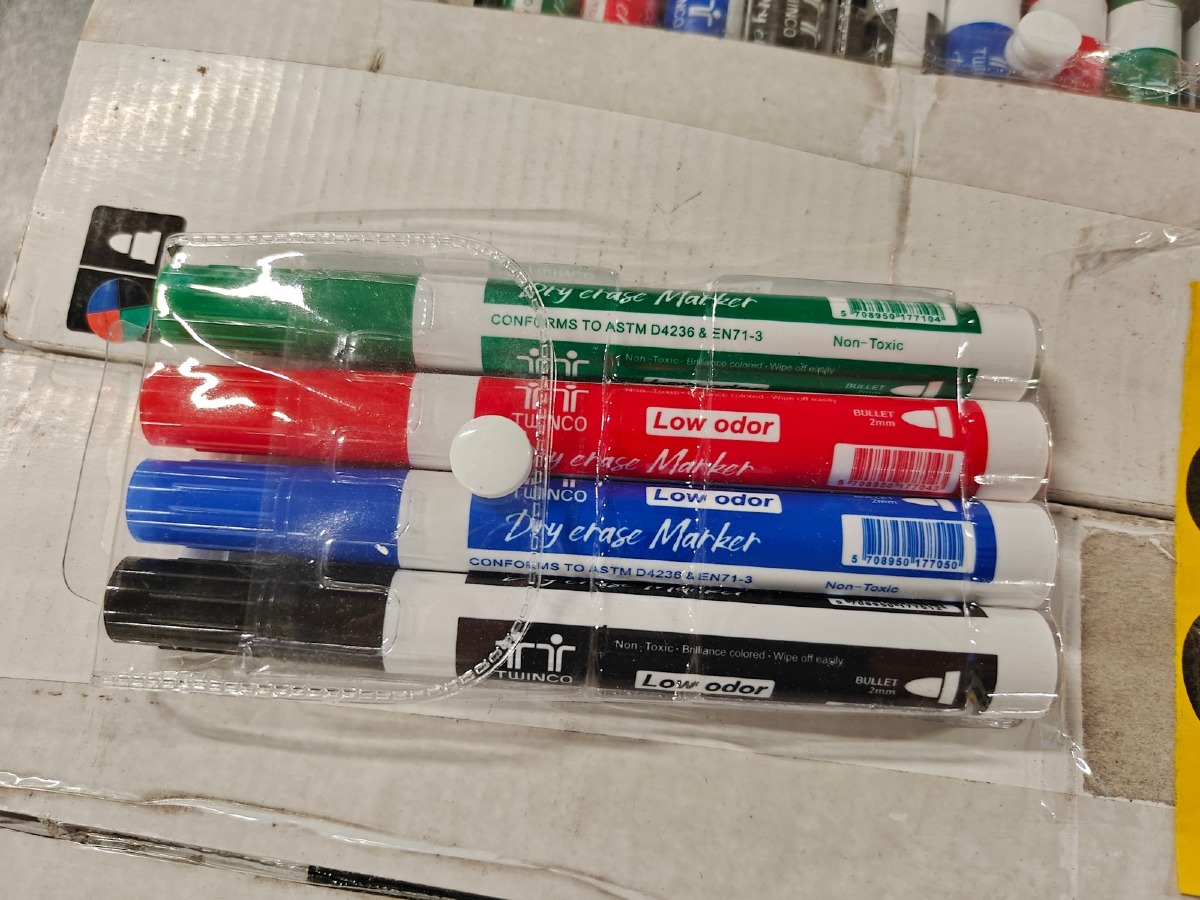 36 sæt Twinco whiteboard markers Sættene består af 4 tusser i grøn, rød, blå og sort.