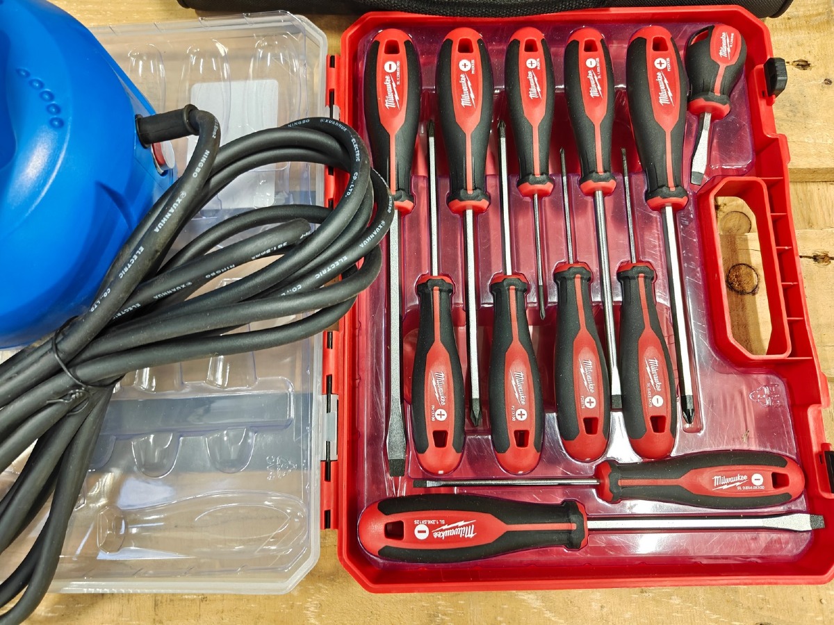 Diverse værktøj - Milwaukee skruetrækkersæt, Milwaukee taske, mm.