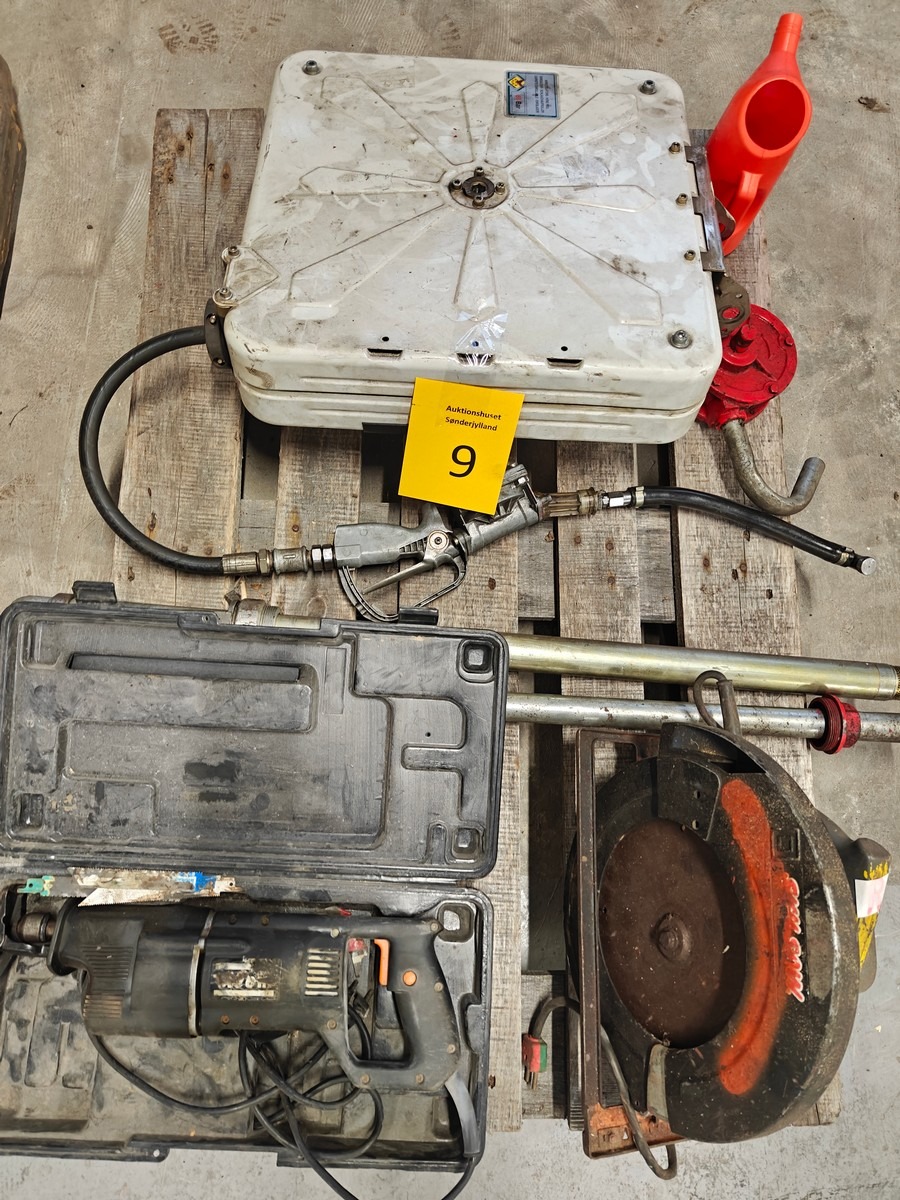 Diverse værktøj. Slagerulle, håndrundsav, mm.