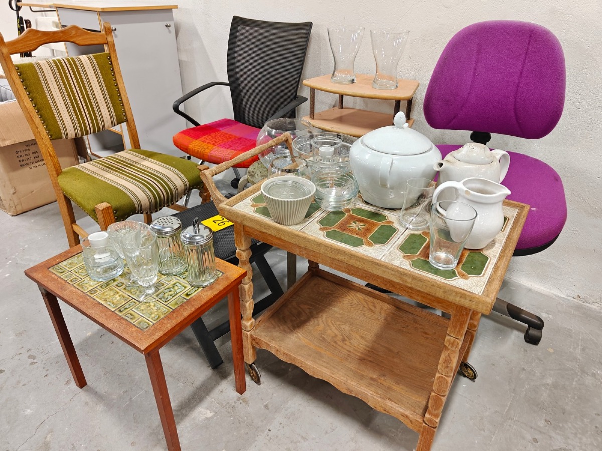 Diverse varer, stole, borde, glas, mm. Mange dele