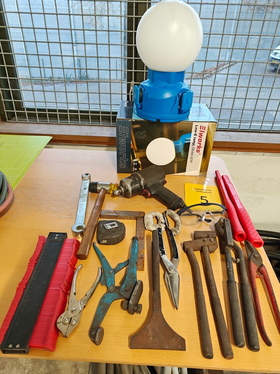 Elworks Low-E arbejdeslampe, samt diverse værktøj & luftnøgle
