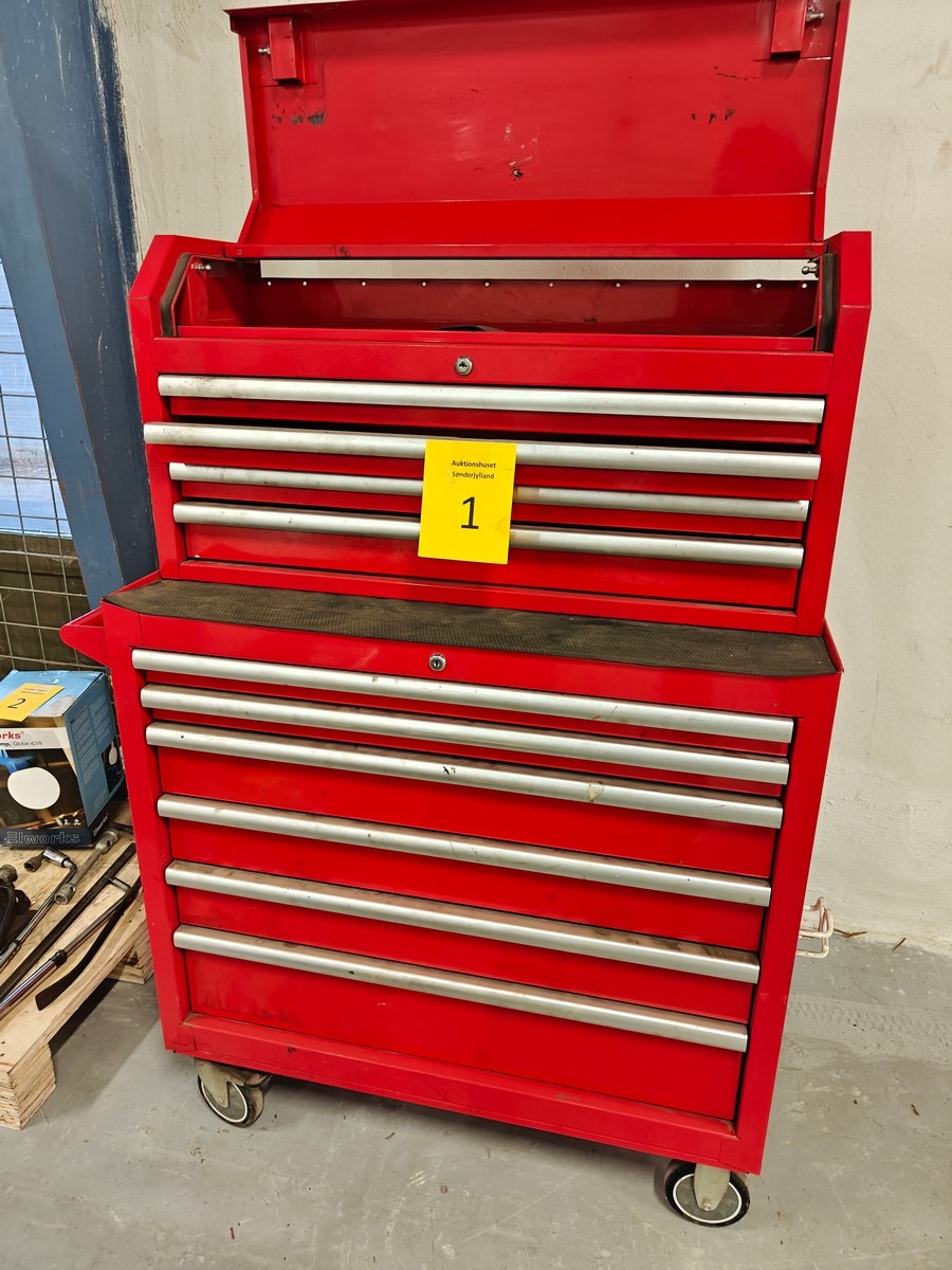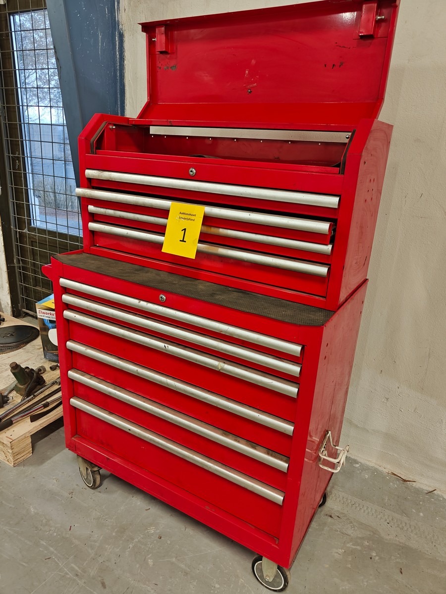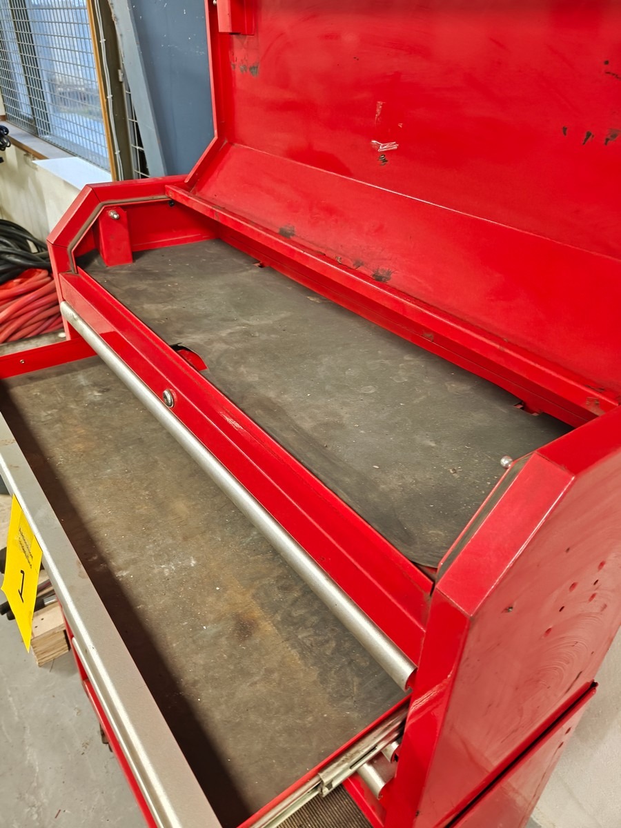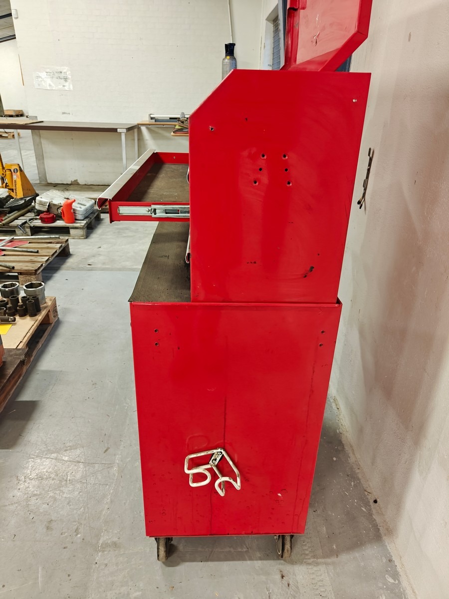 Værksteds / værktøjsvogn på hjul. Uden værktøj. Brugt.