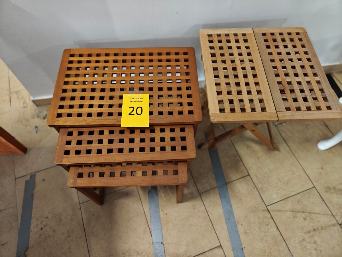 3 i 1 bord & lille klap bord, største bord måler 60 x 60 x h 46 cm klap bord måler 50 x 50 x 50 cm, alle dele i pæn stand