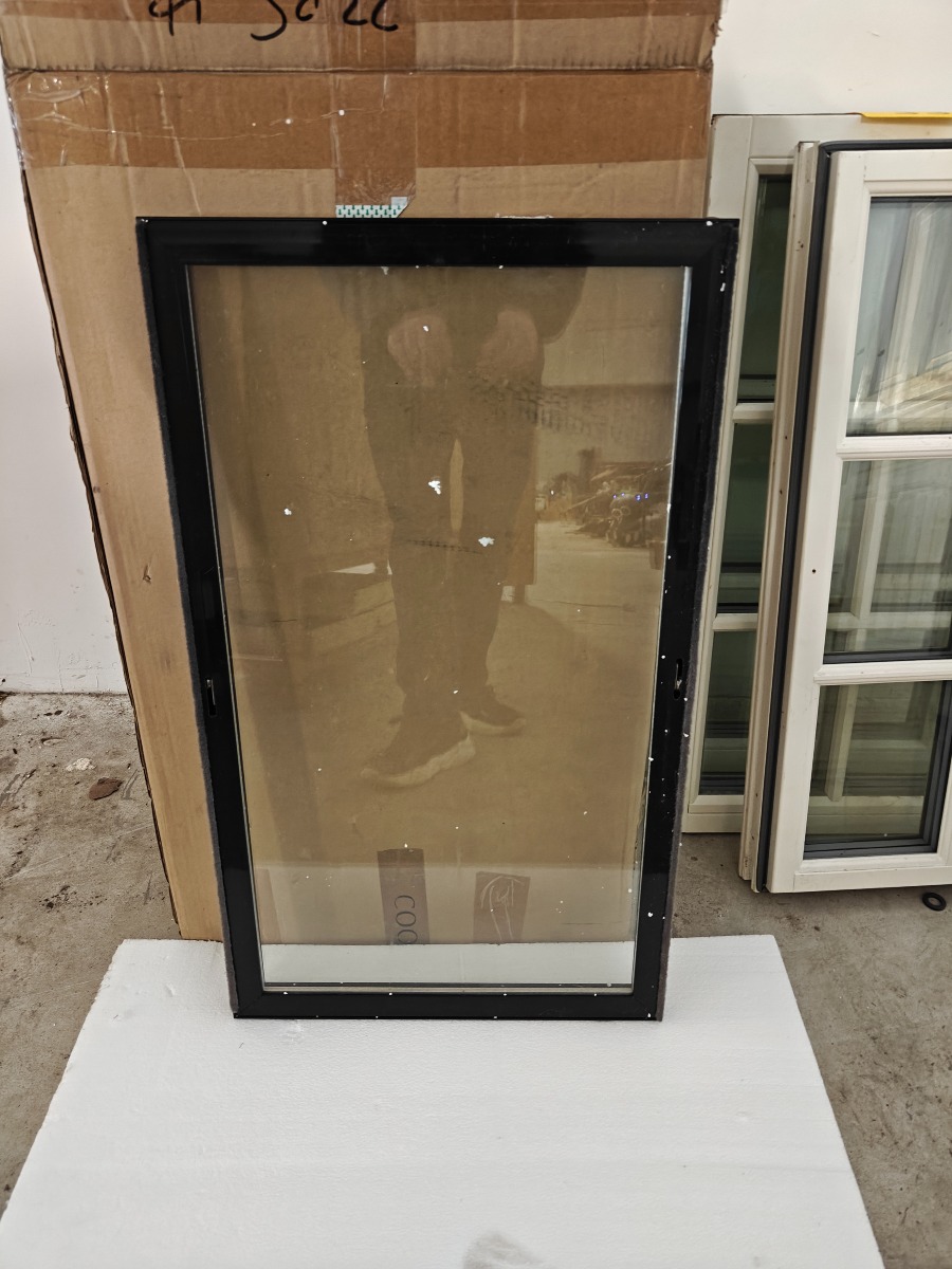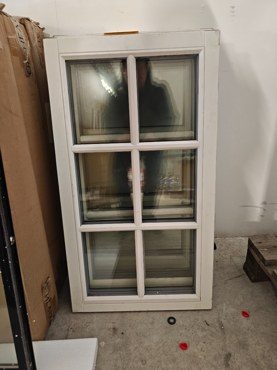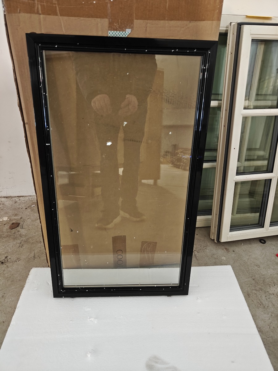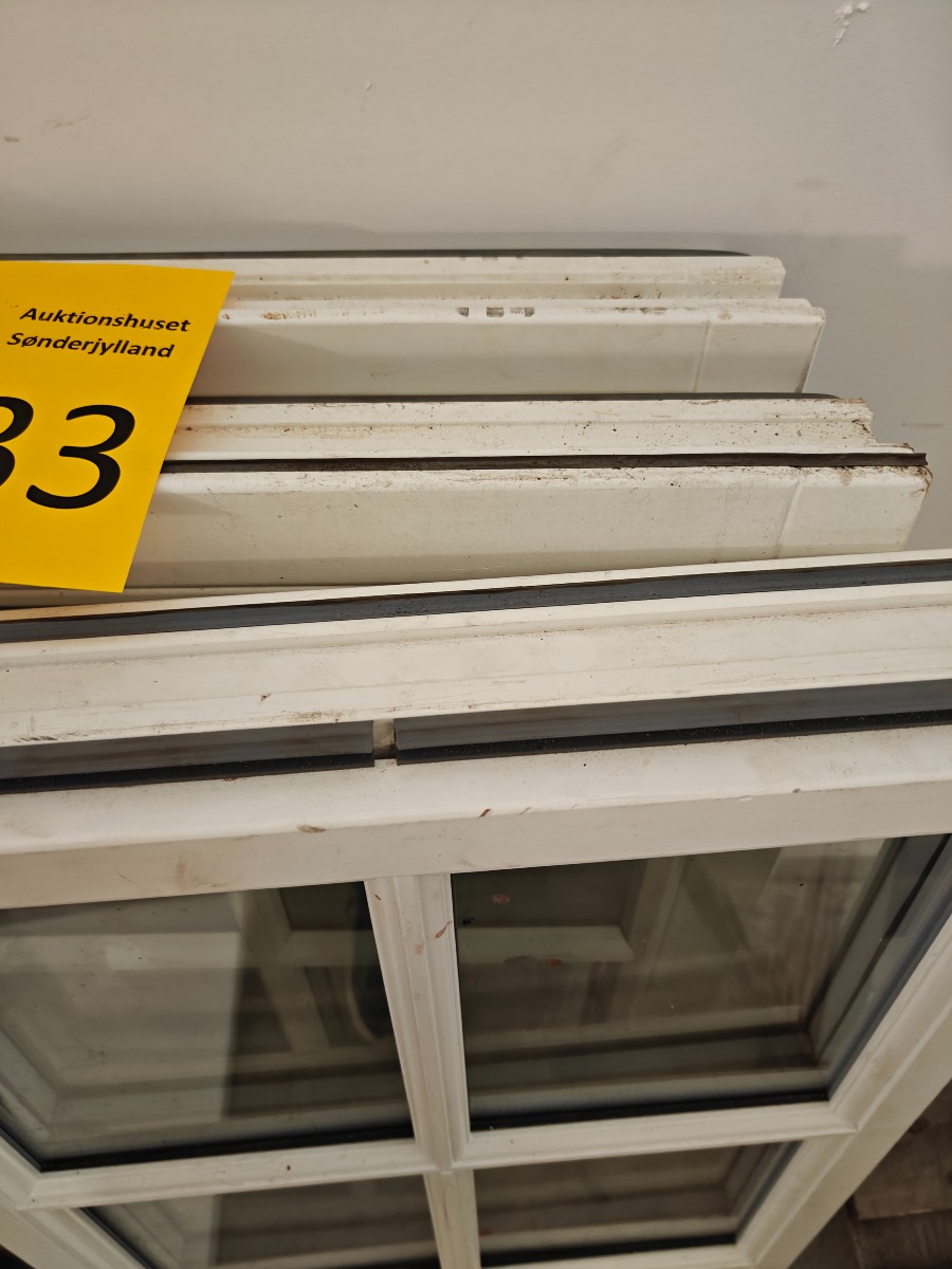 3 vinduer u. karm i træ 2 lags termo 119 x 119 cm  + 3 x 2 lags rudeglas måler 45 x 77 cm i plast ramme ok mstand