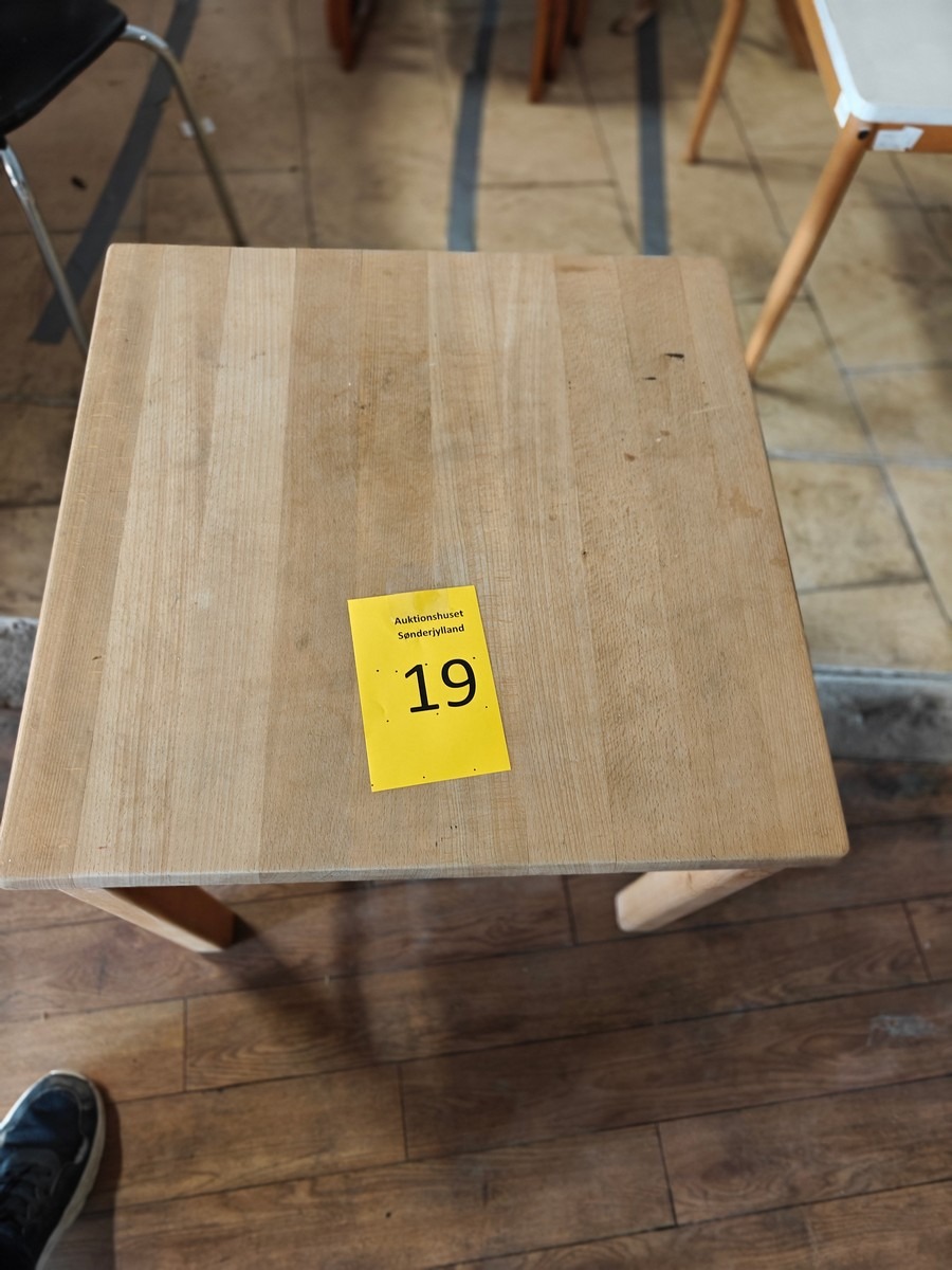 Lille bord med hylde under, måler 60 x 60 x h 54 cm trænger til afslibning