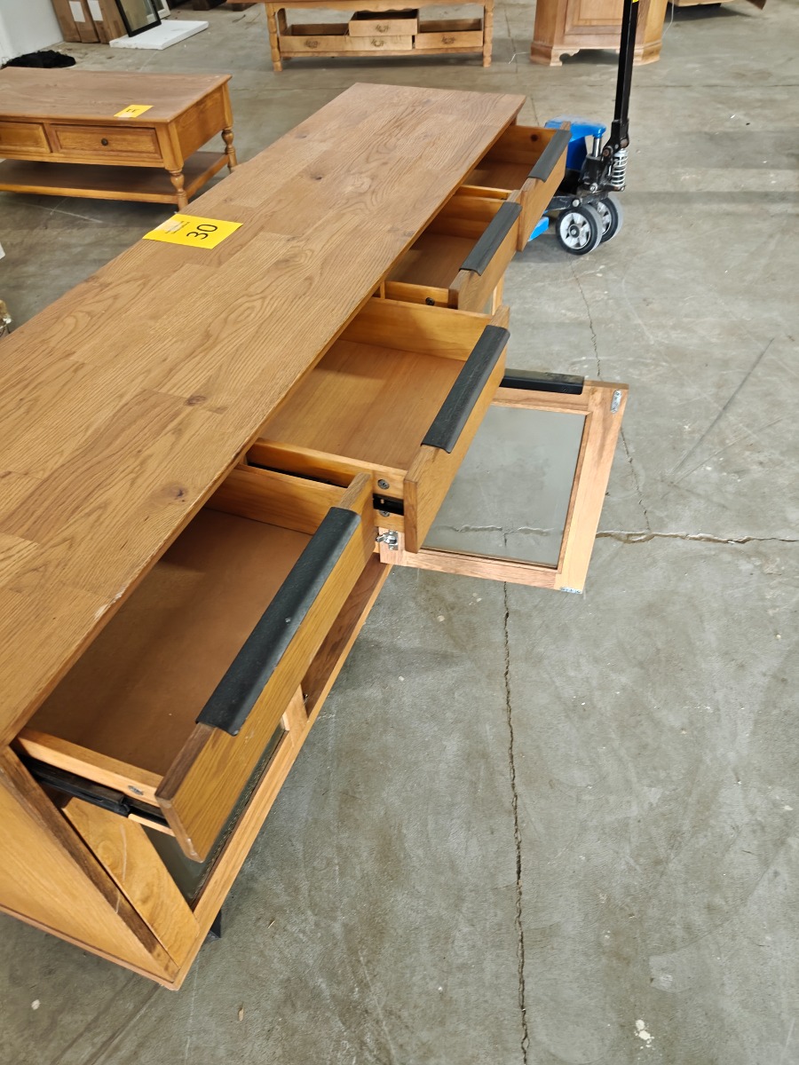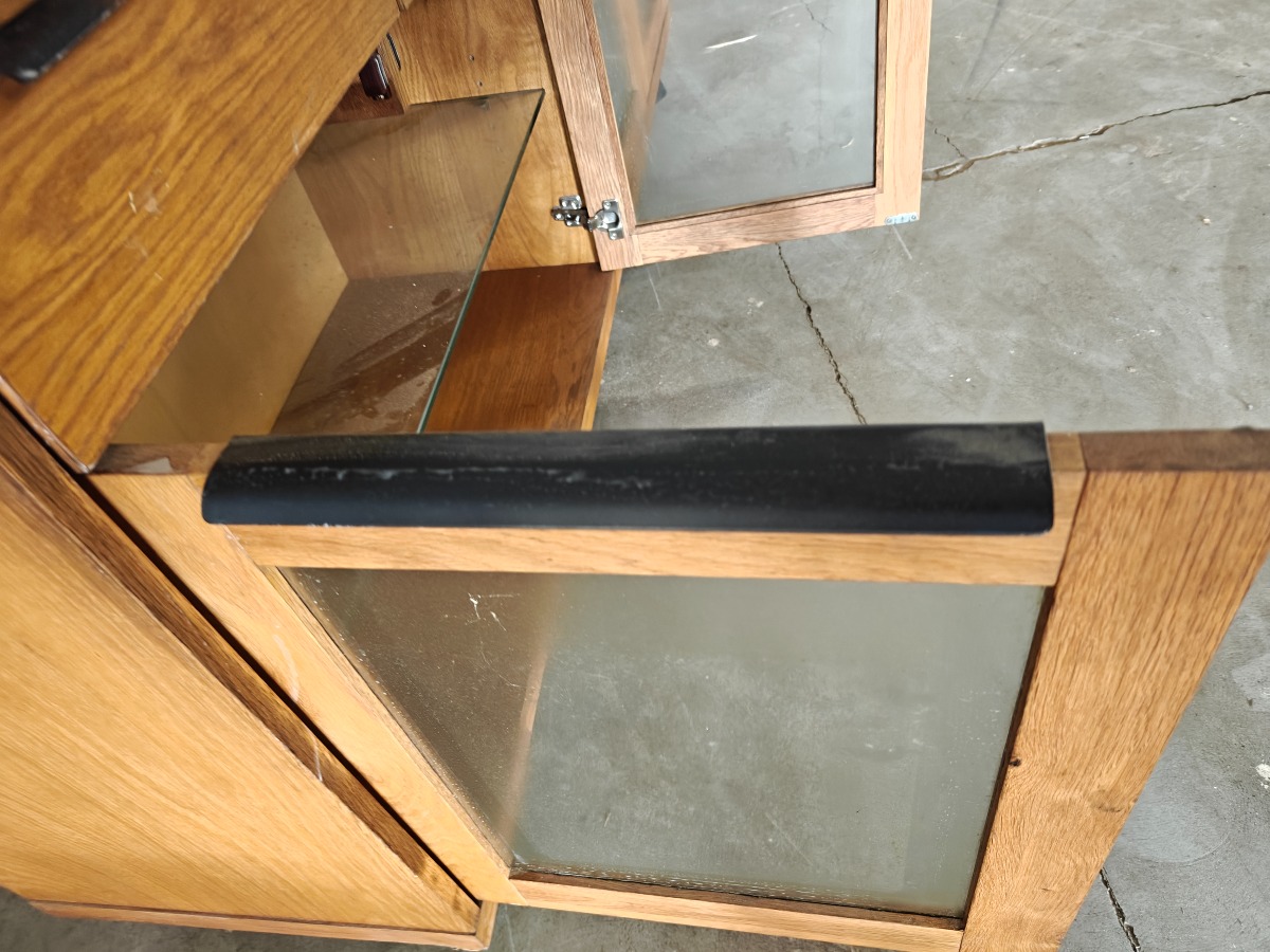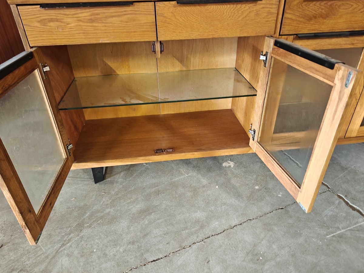 Skænk m. 4 skuffer & 4 glas låger & glas hylder måler L 186 x h 85 x d 45 cm ok stand