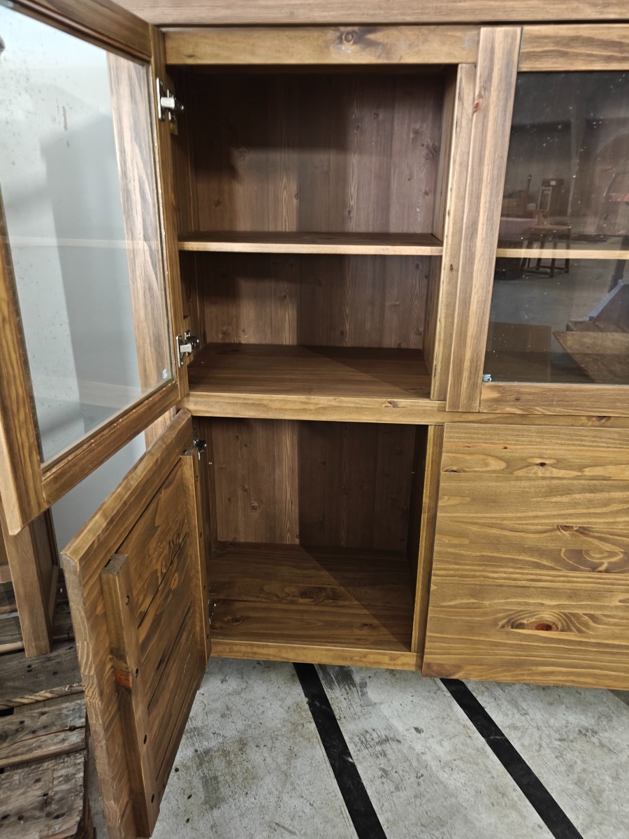 Vitrineskab M 2 skabslågeer og 2 glas låger, L 120 x h141 x d 45 cm ok stand.
