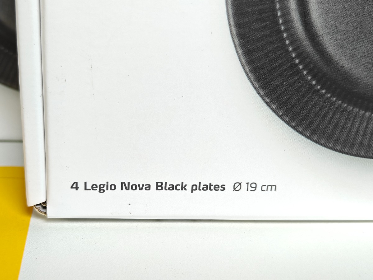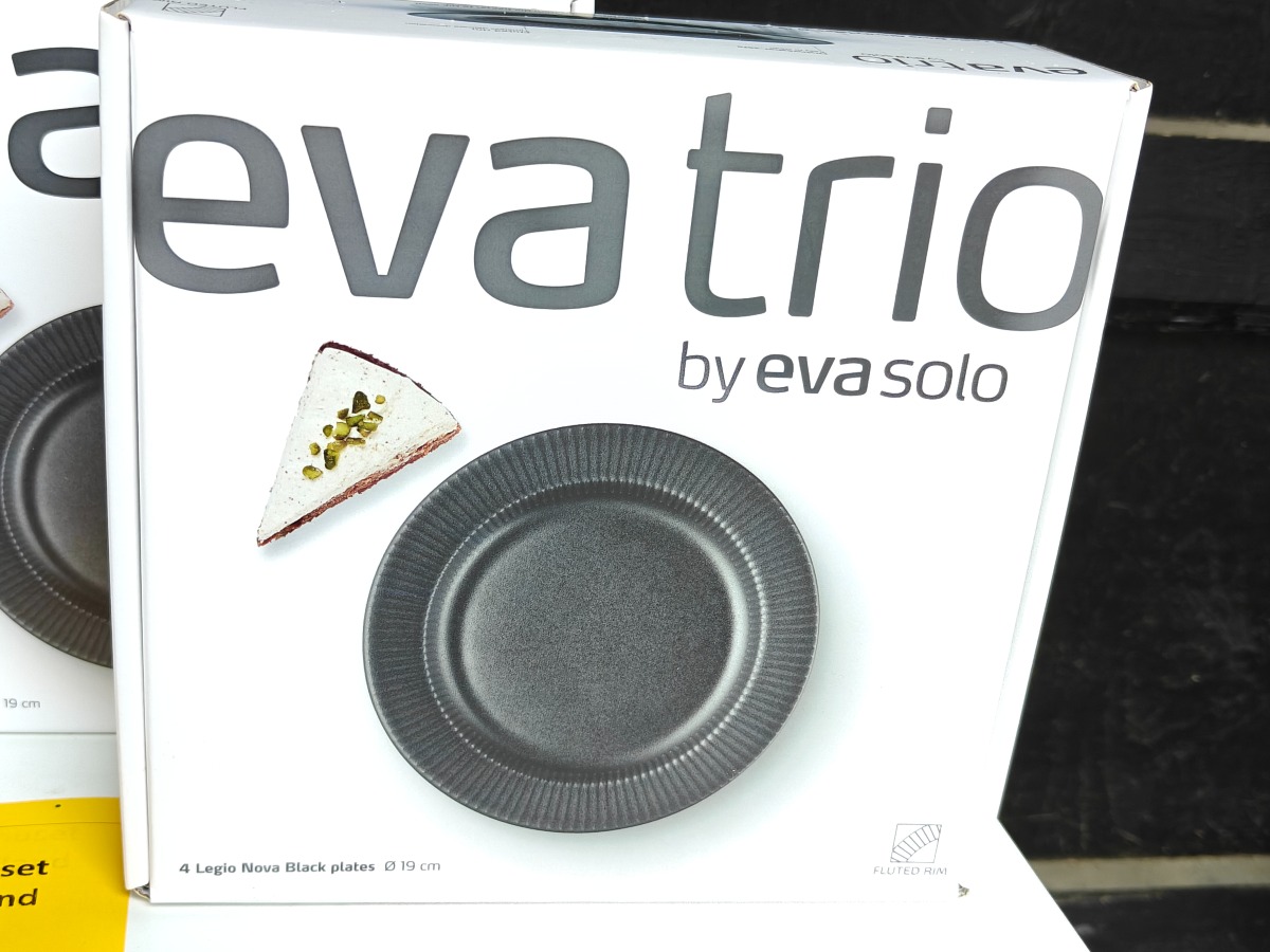 Eva Trio Legio Black. 3 pk. med hver 4 tallerkner i Ø. 19 cm. Varen er er ny og ubrugt og fra en isenkrambutik.