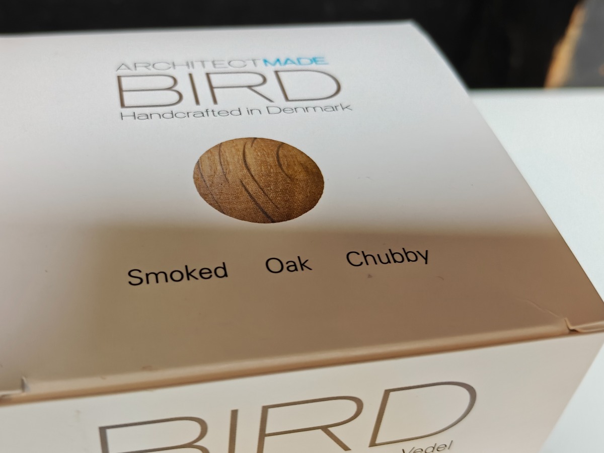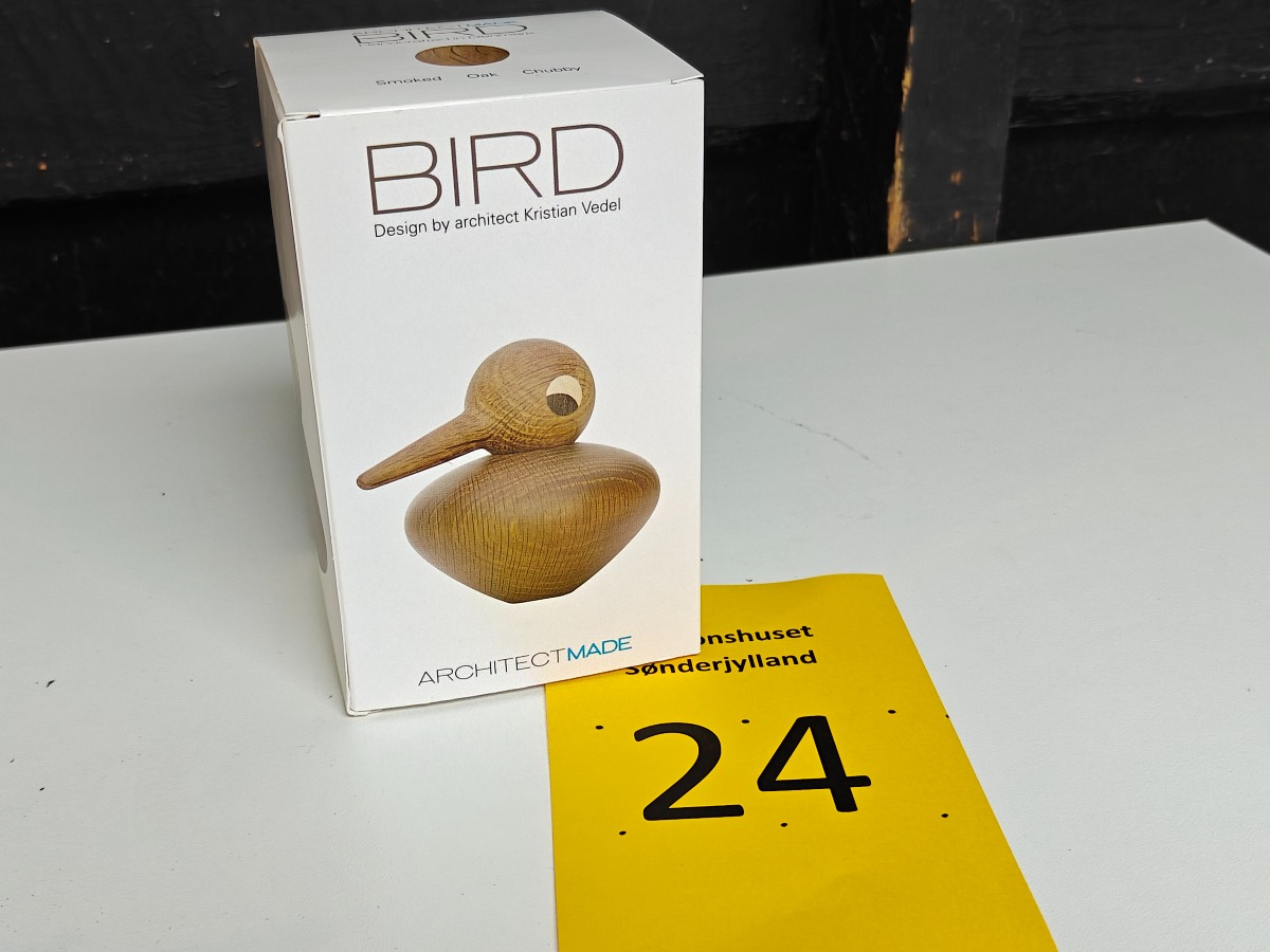 Kristian Vedel Bird af røget eg og andre træsorter. Fremstillet hos Architectmade. Varen er er ny og ubrugt og fra en isenkrambutik