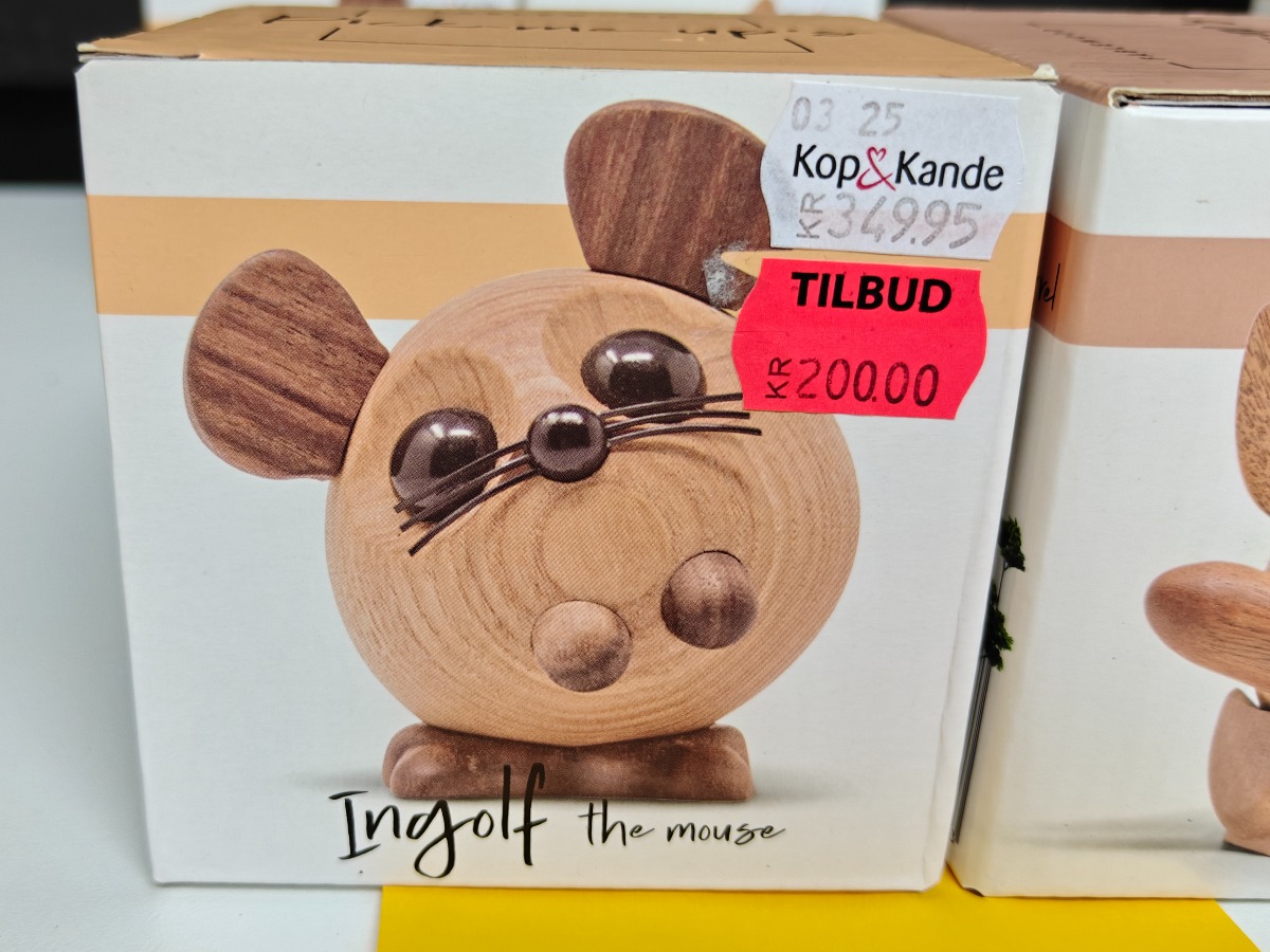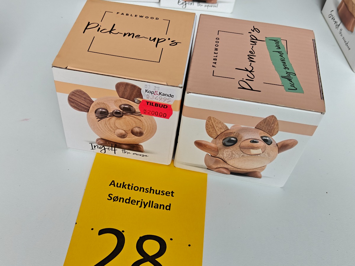 Musen Ingolf og Egernet Egon. Fremstillet af træ hos FableWood. Varen er er ny og ubrugt og fra en isenkrambutik