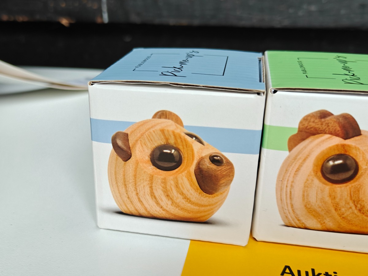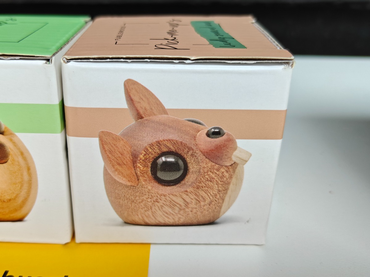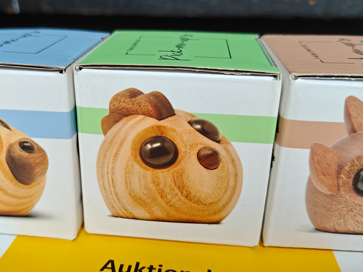 3 figurer fra Fablewood. Fremstillet af træ. Bjørnen Yrsa, Kyllingen Viola og Egernet Eigil. Varen er er ny og ubrugt og fra en isenkrambutik