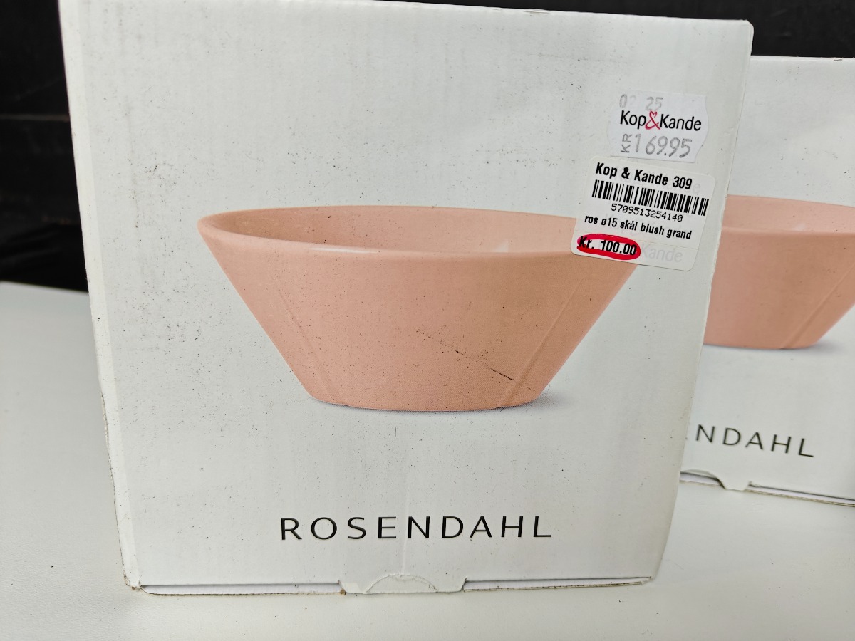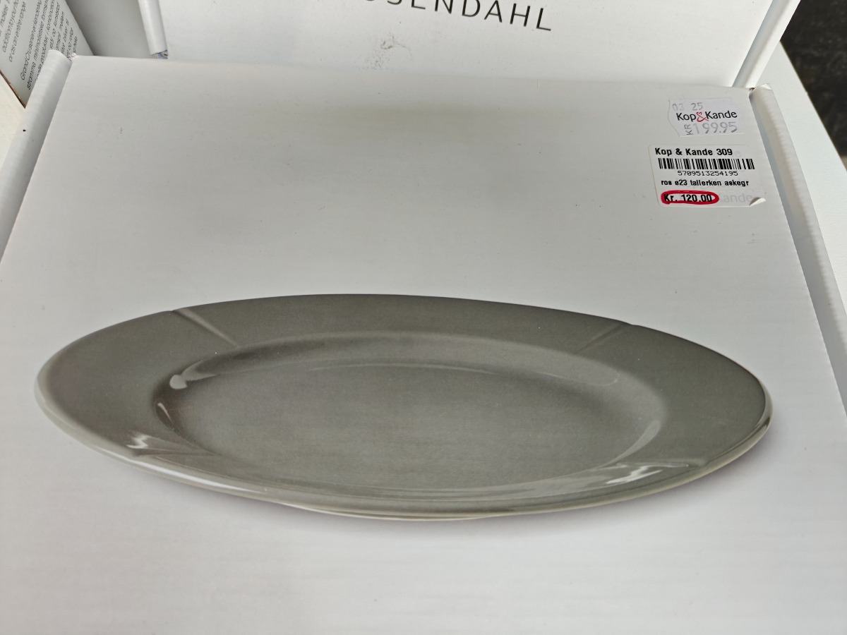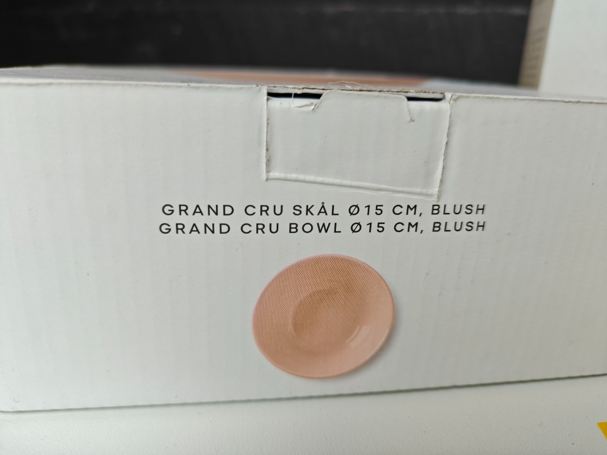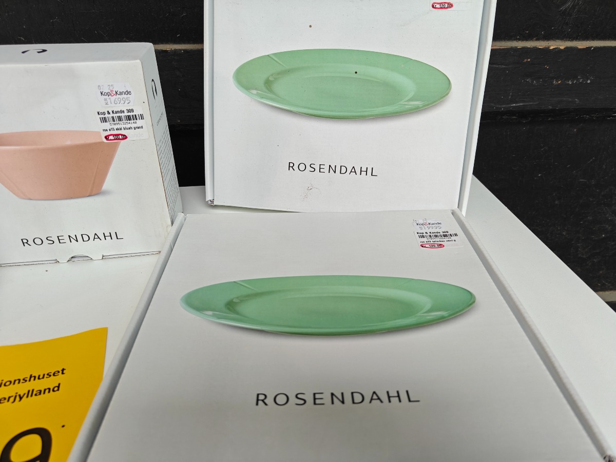 Rosendahl Gran Cru service. 2 skåle i rosa, i tallerken i lys grøn og 2 tallerkner i lys grå. " sidstnævnte med Ø. 23 cm. Varen er er ny og ubrugt og fra en isenkrambutk