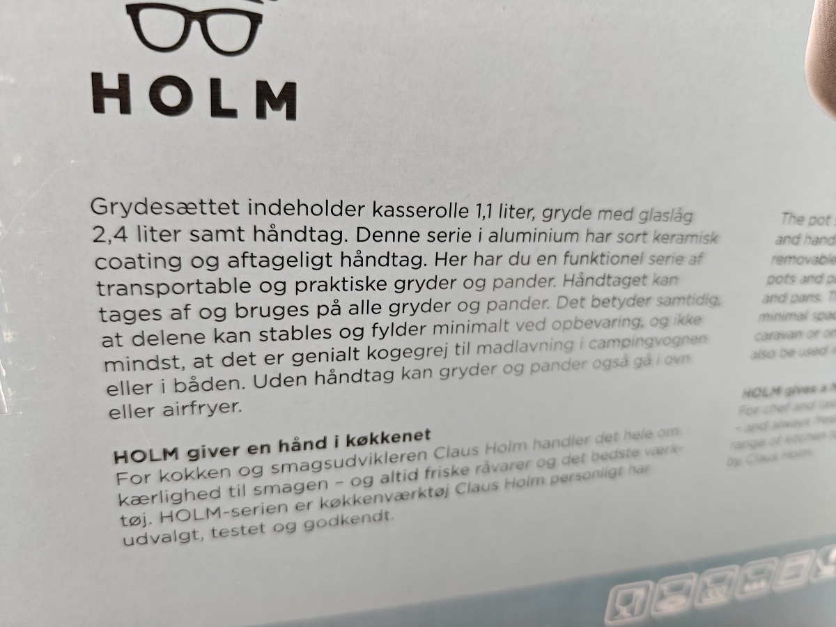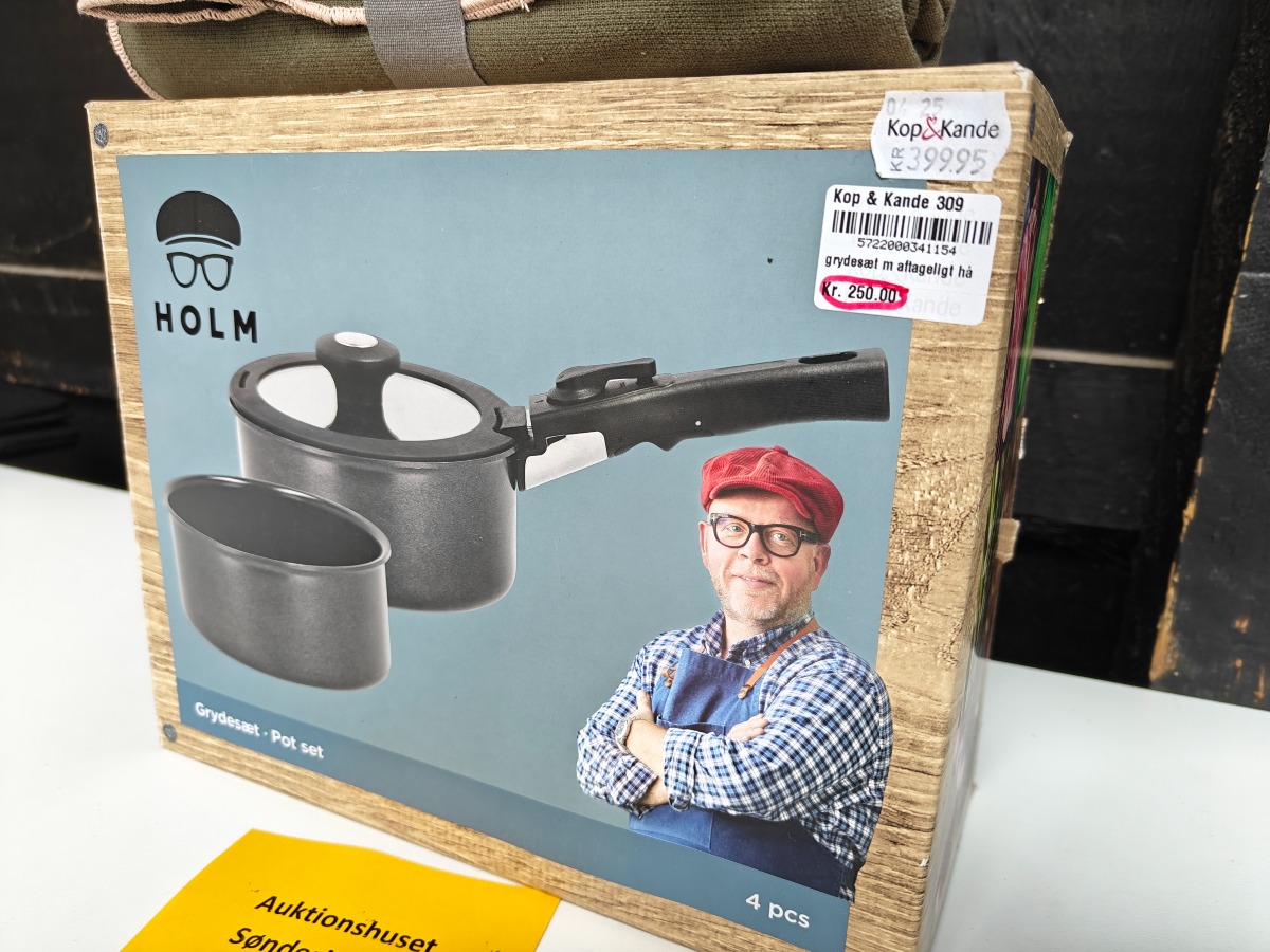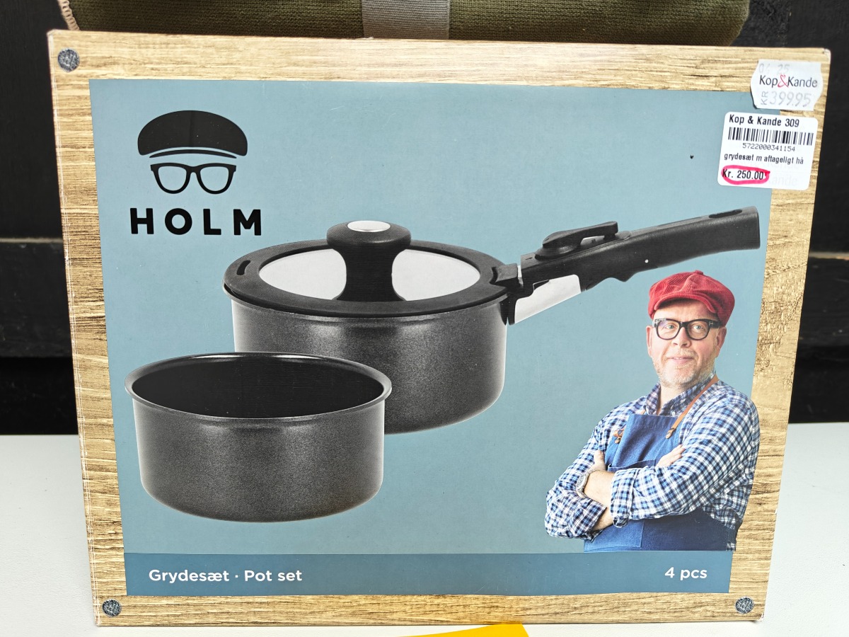 Claus Holm grydesæt i 4 dele samt forstykke. Varen er er ny og ubrugt og fra en isenkrambutik
