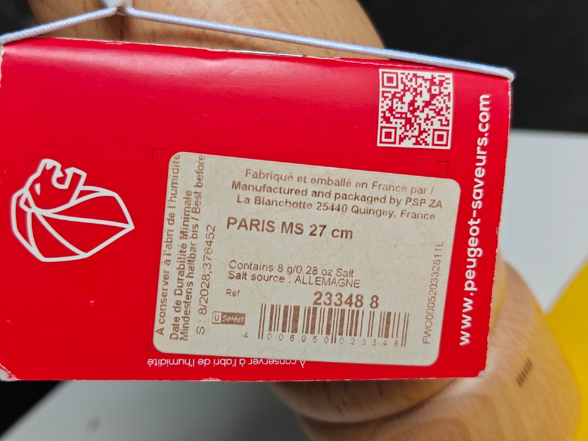 Peugeot saltkværn af bøg. H. 27 cm. Varen er er ny og ubrugt og fra en isenkrambutk