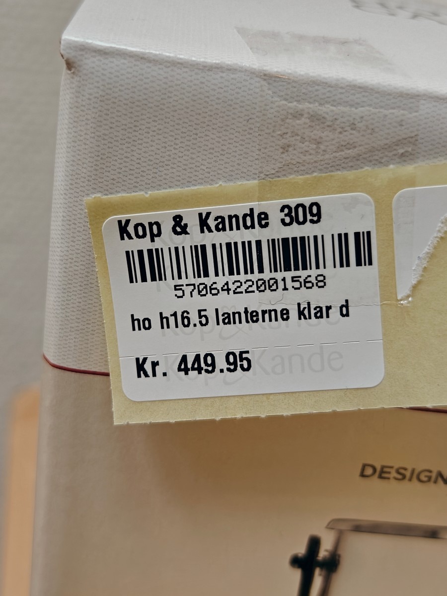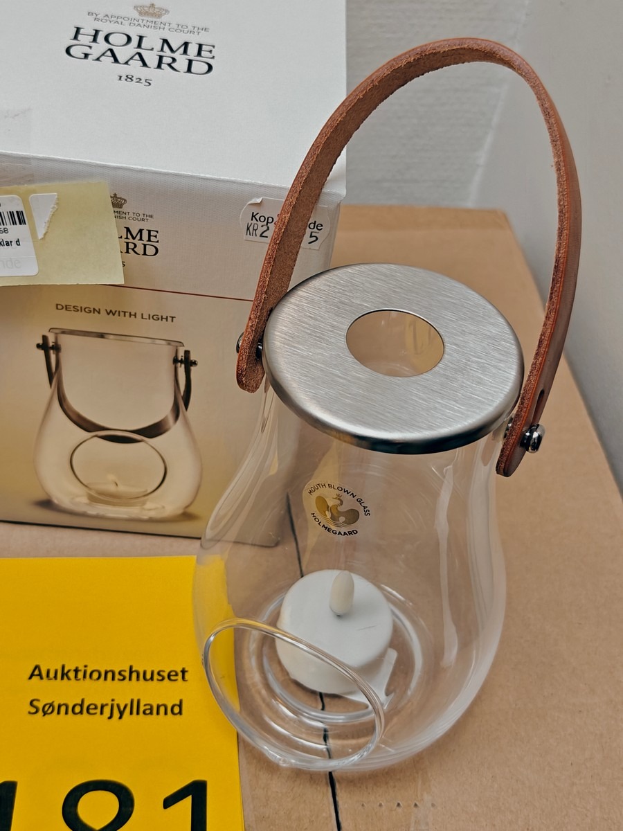 Holmegaard lanterne af klart glas 16,5 cm. Varen er er ny og ubrugt og fra en isenkrambutik