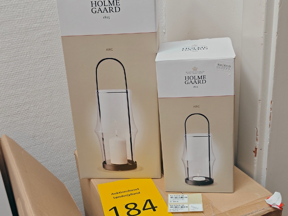 Holmegaard Arc lanterner 25,5 og 39 cm. Varen er er ny og ubrugt og fra en isenkrambutik