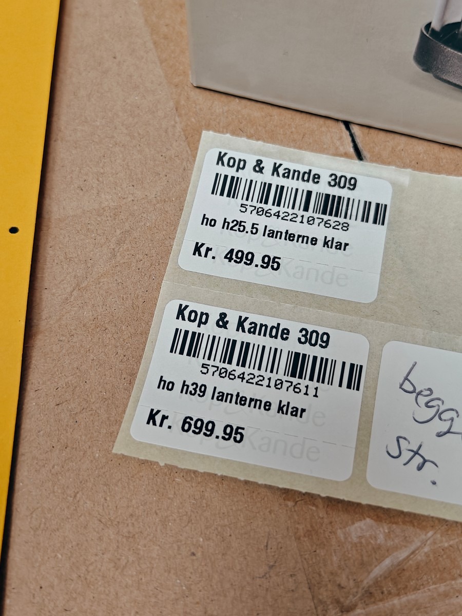 Holmegaard Arc lanterner 25,5 og 39 cm. Varen er er ny og ubrugt og fra en isenkrambutik