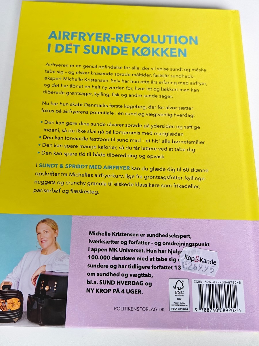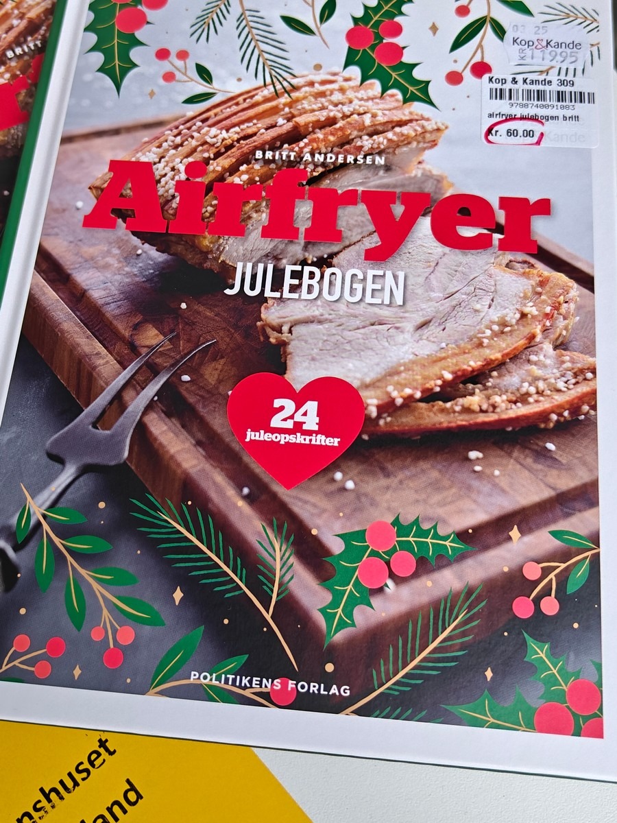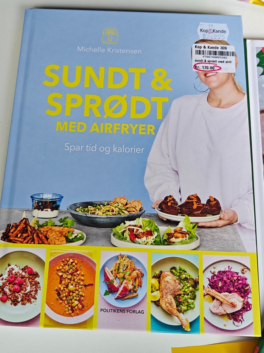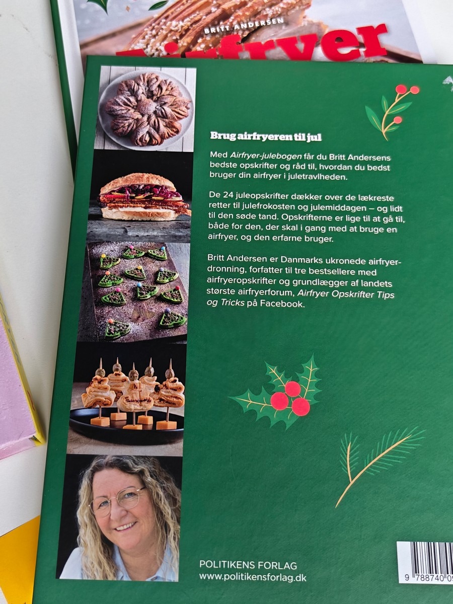 Bøger med opskrifter til airfryer. 2 stk, Sundt og Sprødt af Michelle Kristensen, 2 stk. Britt Andersen Airfryer Julebogen. Varen er er ny og ubrugt og fra en isenkrambutik