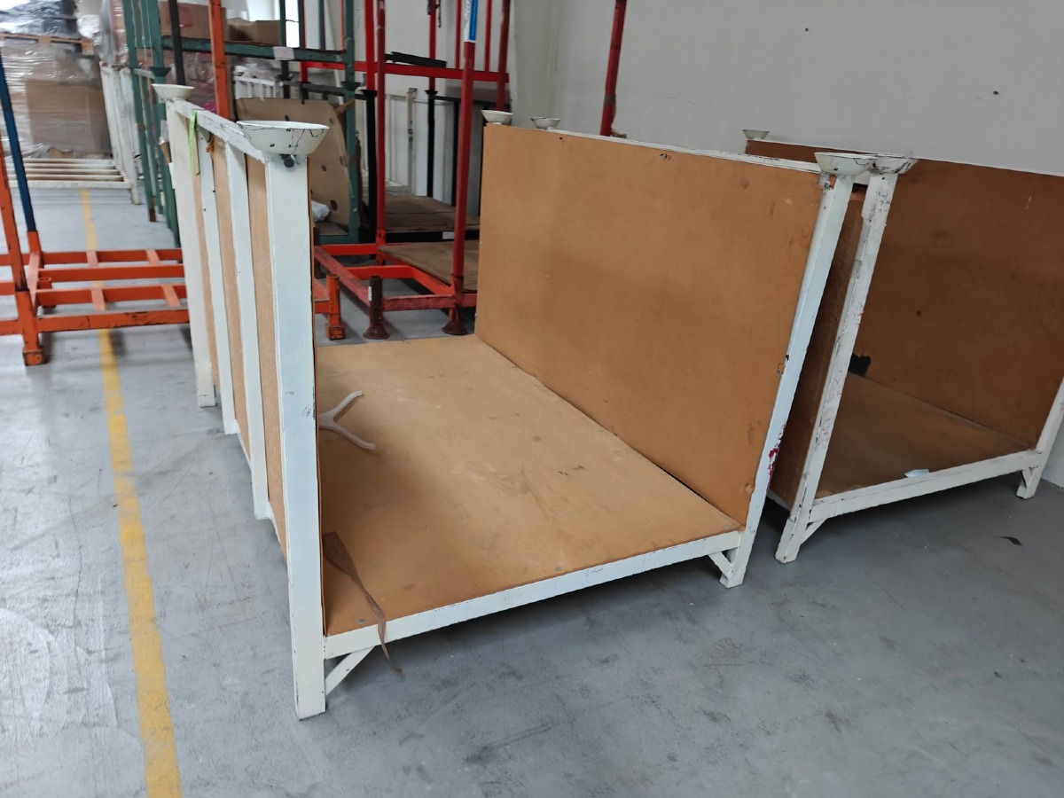 2 Opbevaringsstativer t/lager. Mål: L: 160 cm. B: 110 cm. H: 106 cm. Brugte.