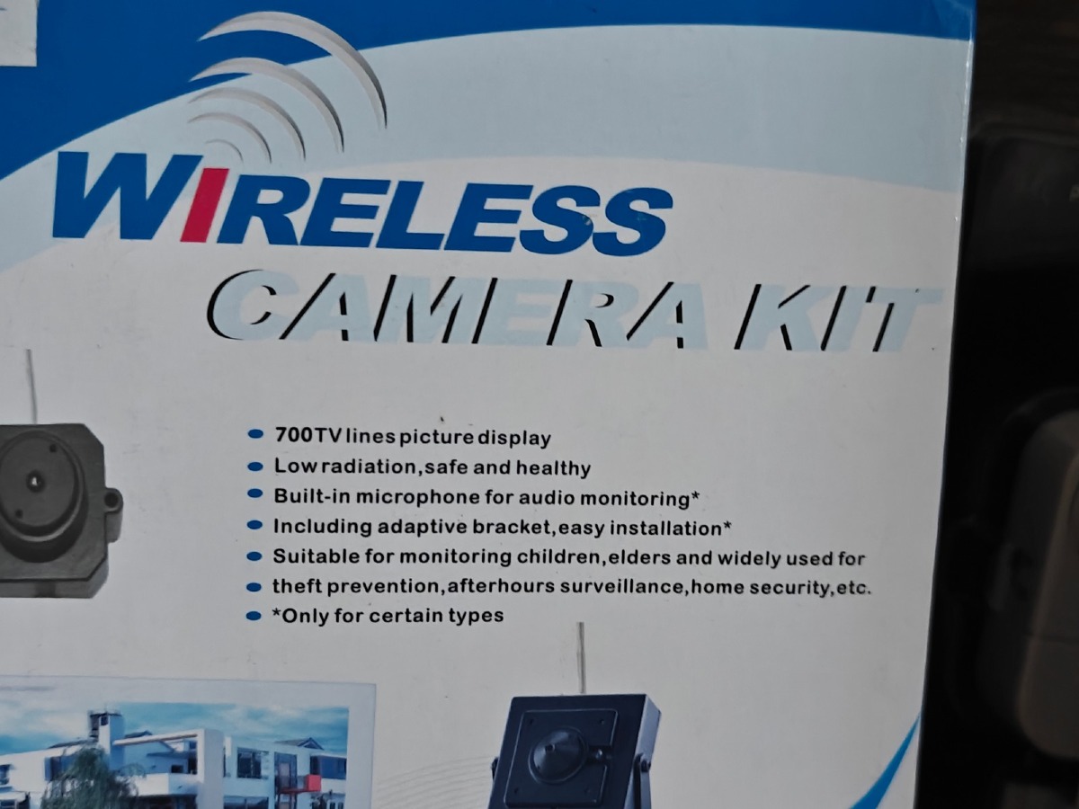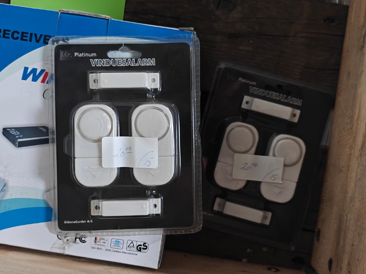2 Trådløse overvågningskamera kits, 2 vinduesalarmer, 1 LED mini panel & 1 ks lyskilder/pærer. Ubrugt.