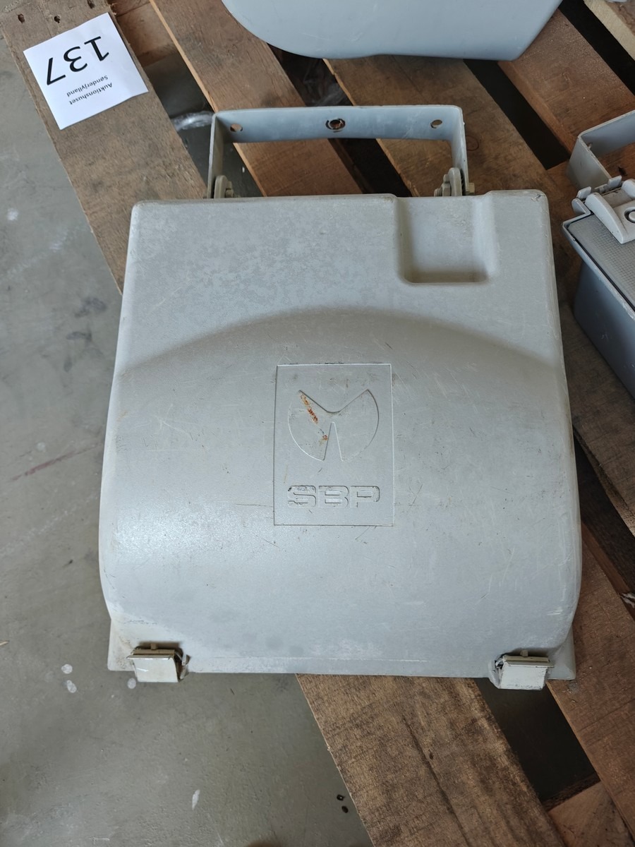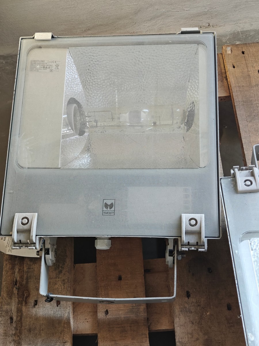 3 Byggepladslamper. Mrk: SBP - LightLine. Jolly Sym 400 W. Klasse 1. Palle medfølger ikke.