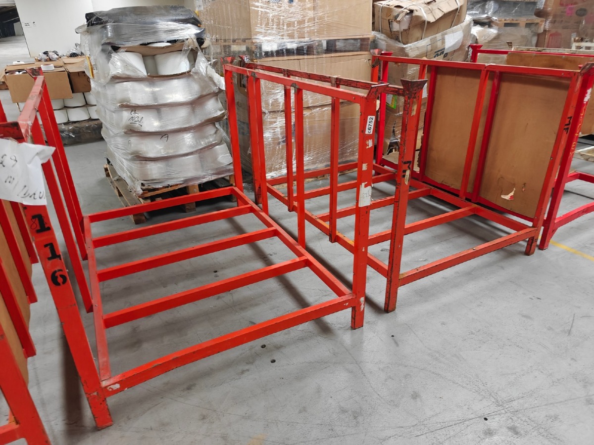 4 Opbevaringsstativer t/lager. Mål: L: 160 cm. B: 110 cm. H: 106 cm. Brugte.