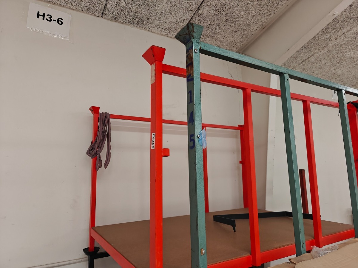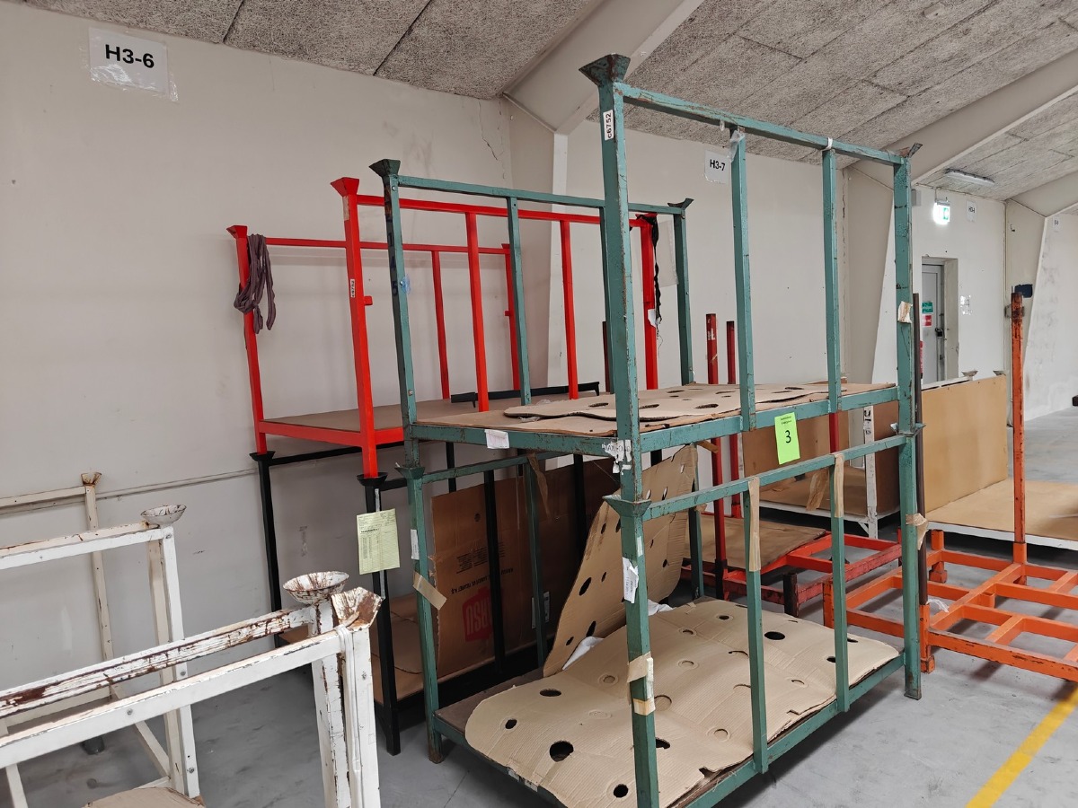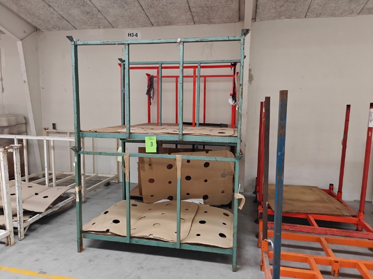 4 Opbevaringsstativer t/lager. Mål: L: 160 cm. B: 110 cm. H: 106 cm. Brugte.