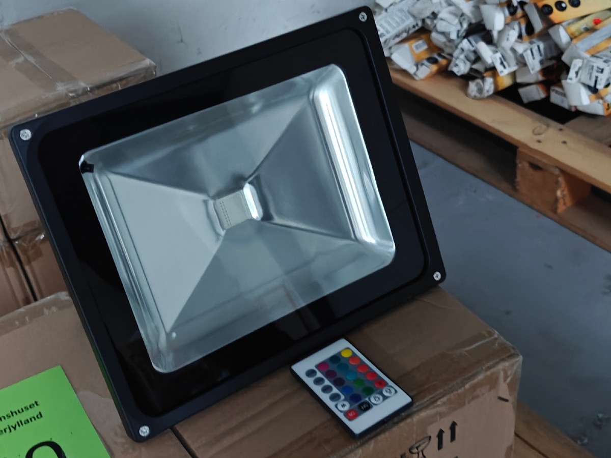 4 stk. RGB Flood Lights m/farveskift & fjernbetjening. Ubrugte og i emballage
