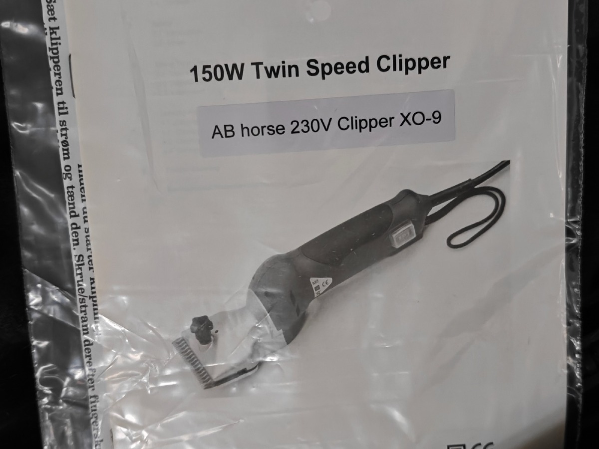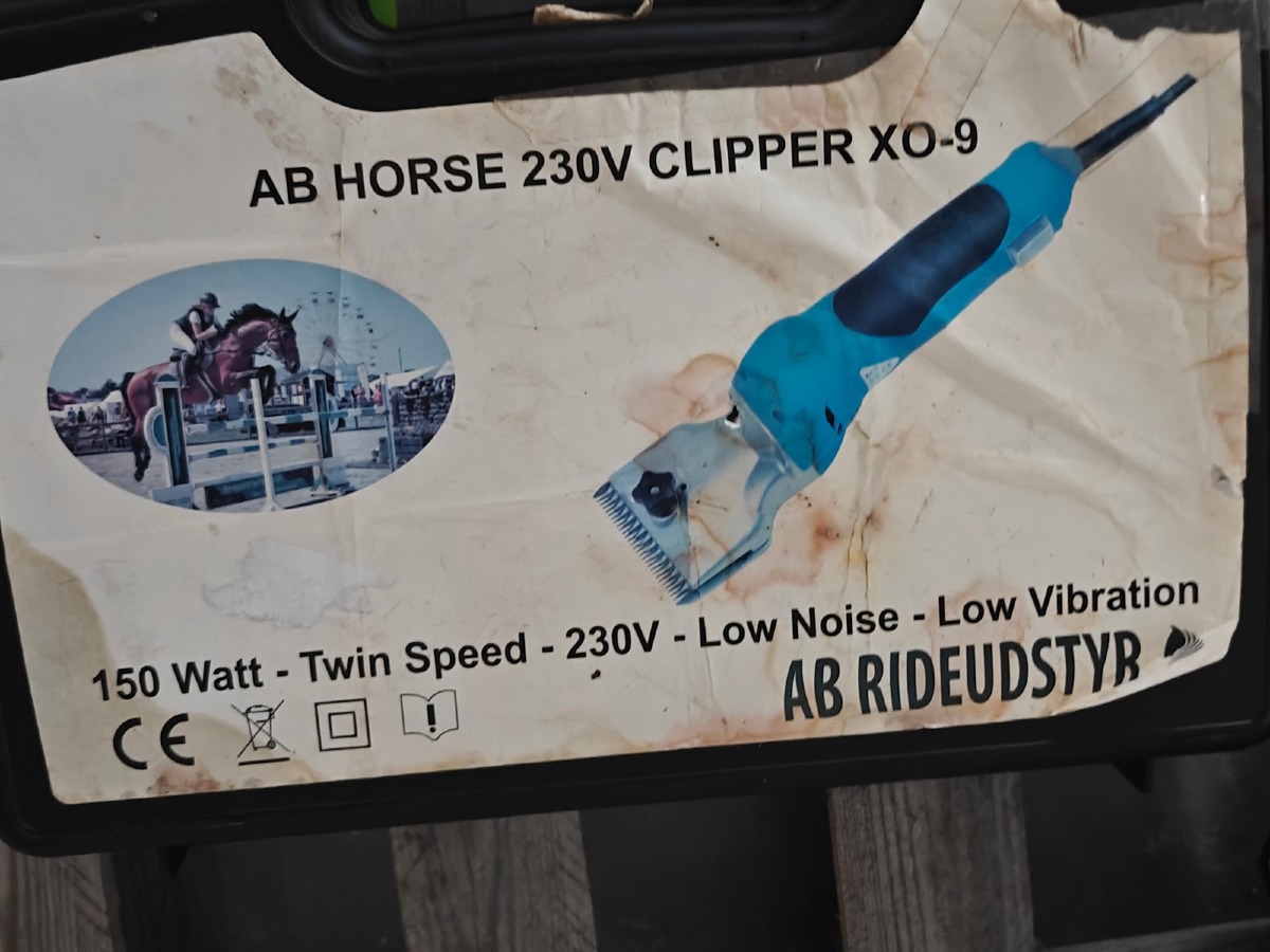 Hesteklipper. Mrk AB Horse. Model: XO-9. 150W Twin Speed. 230 V. Lydsvag. Ekstra skær medfølger. I kuffert. Brugt.