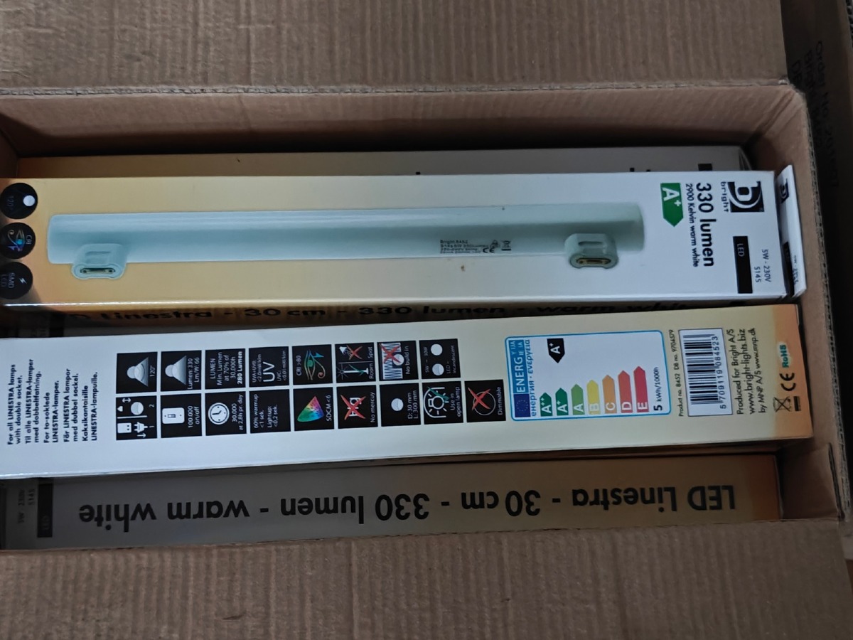 Parti LEDrør. Ass str og modeller. Ubrugte og i emballage. Palle og pallerammer medfølger ikke.
