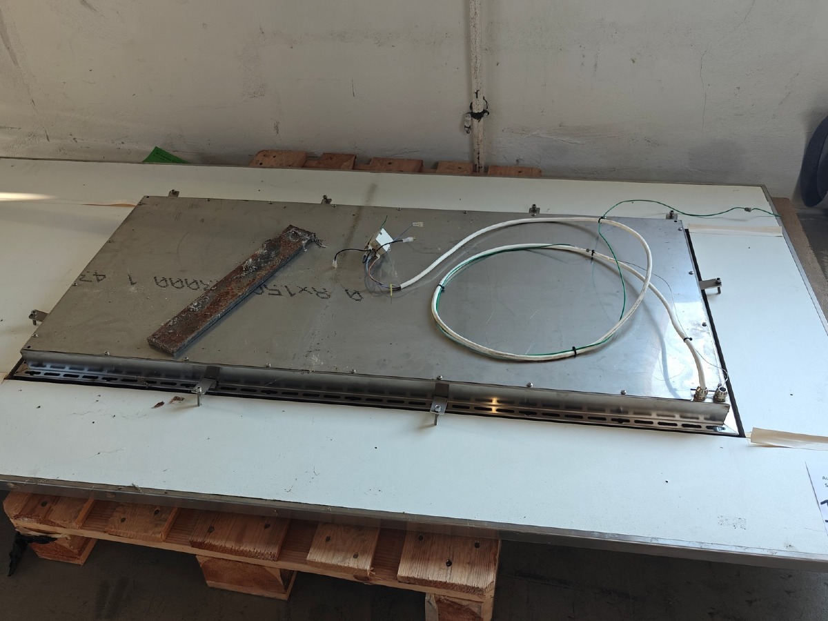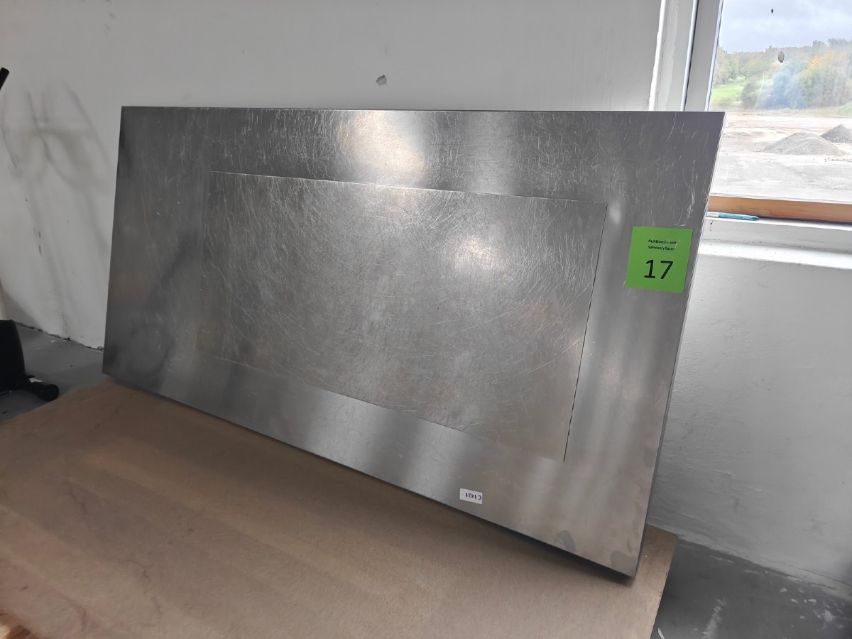 Varmebordplade i rustfast stål. Mål: 200 x 100 cm. Brugt. Stand ukendt.