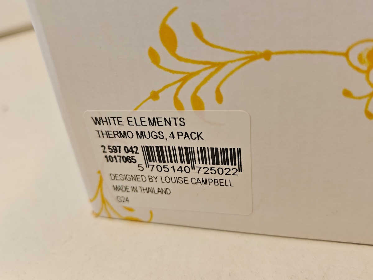 Royal Copenhagen, hvid Elements termokopper, 35 cl, 4 stk/pk. Vejledende udsalgspris 799,95 - Ny, i original emballage og ubrugt. Oprydning fra isenkram butik.