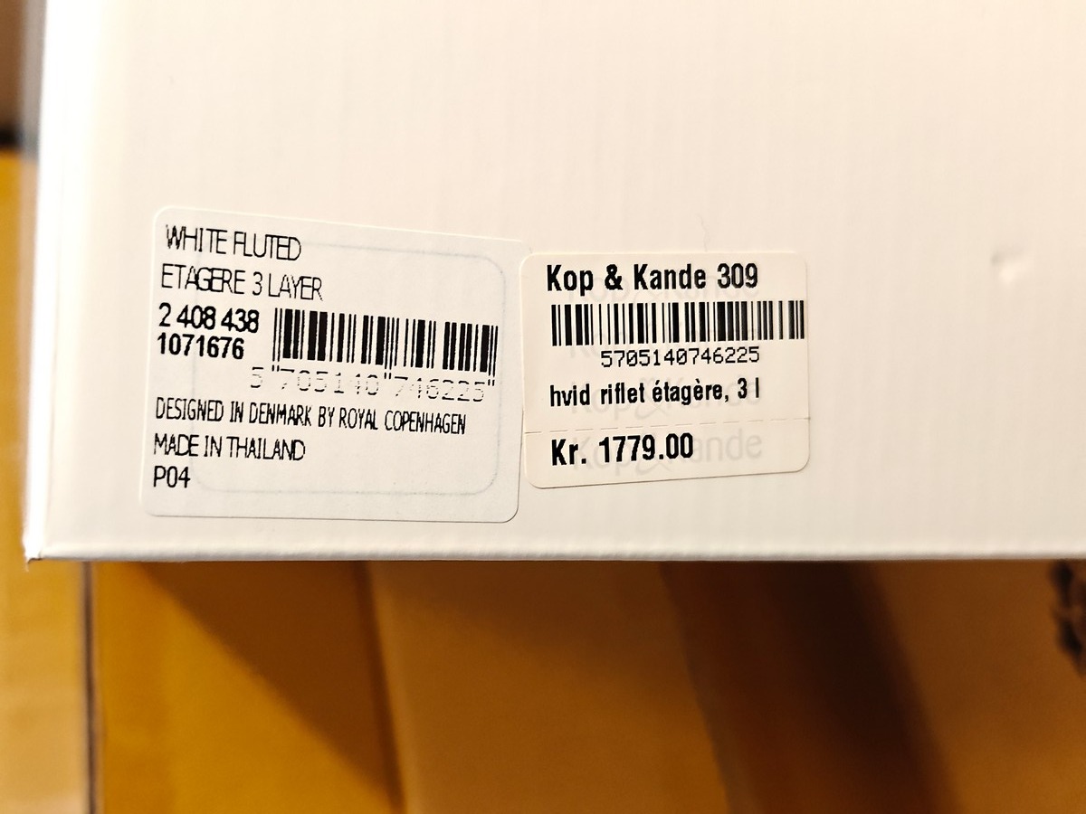 Royal Copenhagen, hvid riflet etagere 3 lag. Vejledende udsalgspris 1.779 - Ny, i original emballage og ubrugt. Oprydning fra isenkram butik.