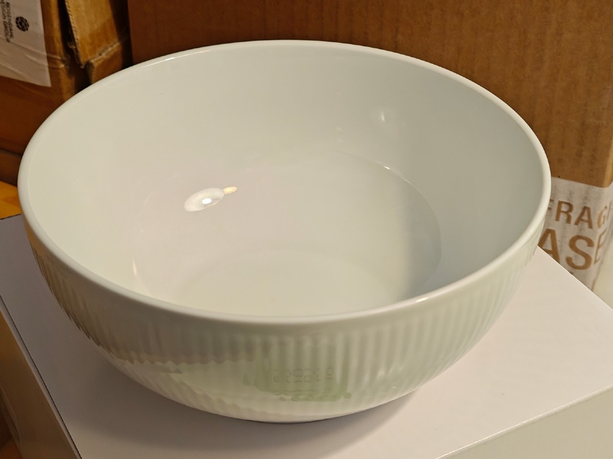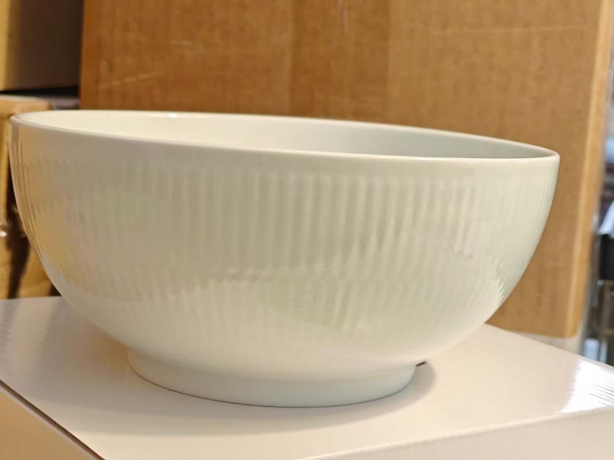 Royal Copenhagen, hvidt riflet skål 18 cm. Vejledende udsalgspris 529,95 Ny, i original emballage og ubrugt. Oprydning fra isenkram butik.