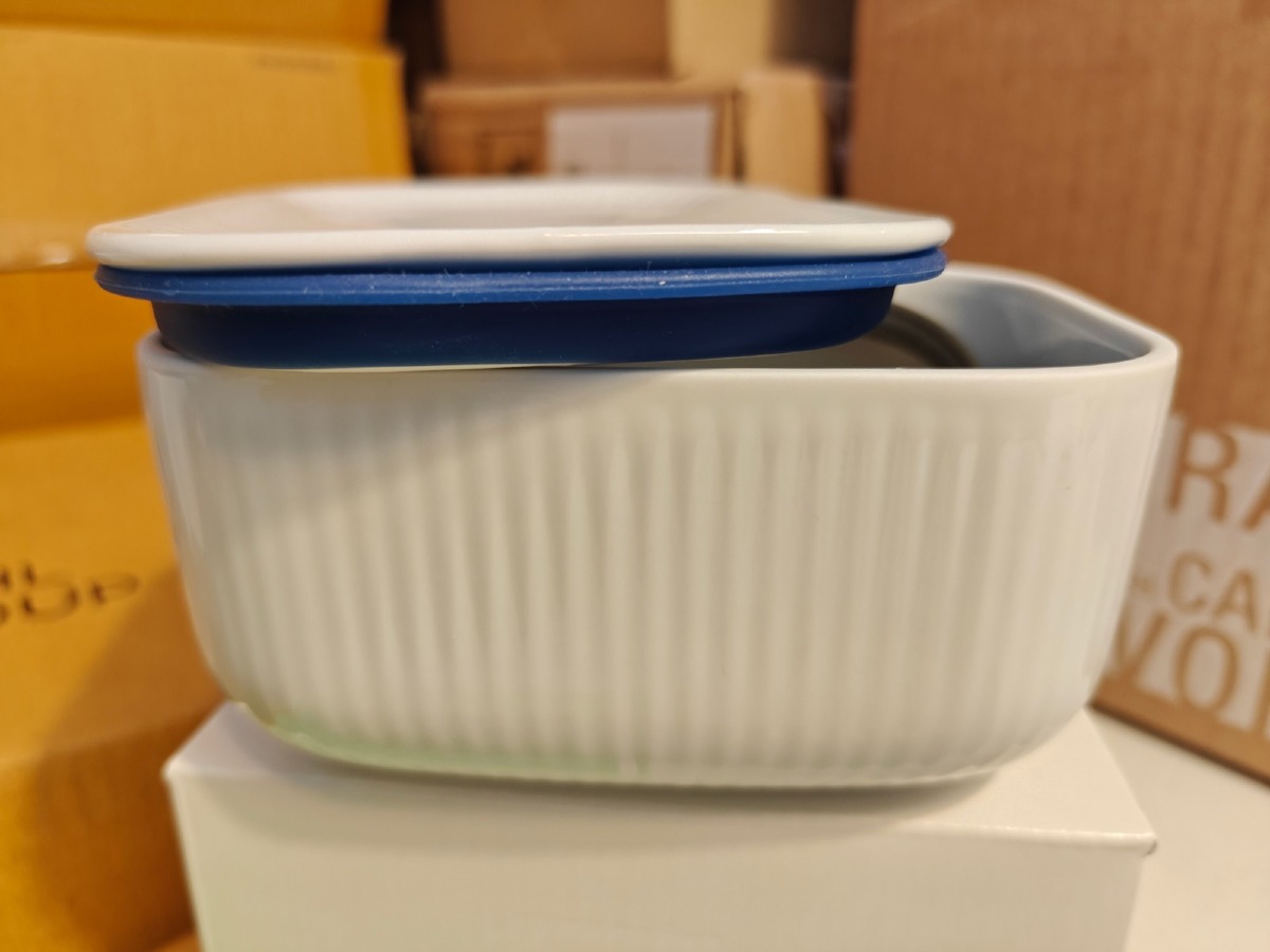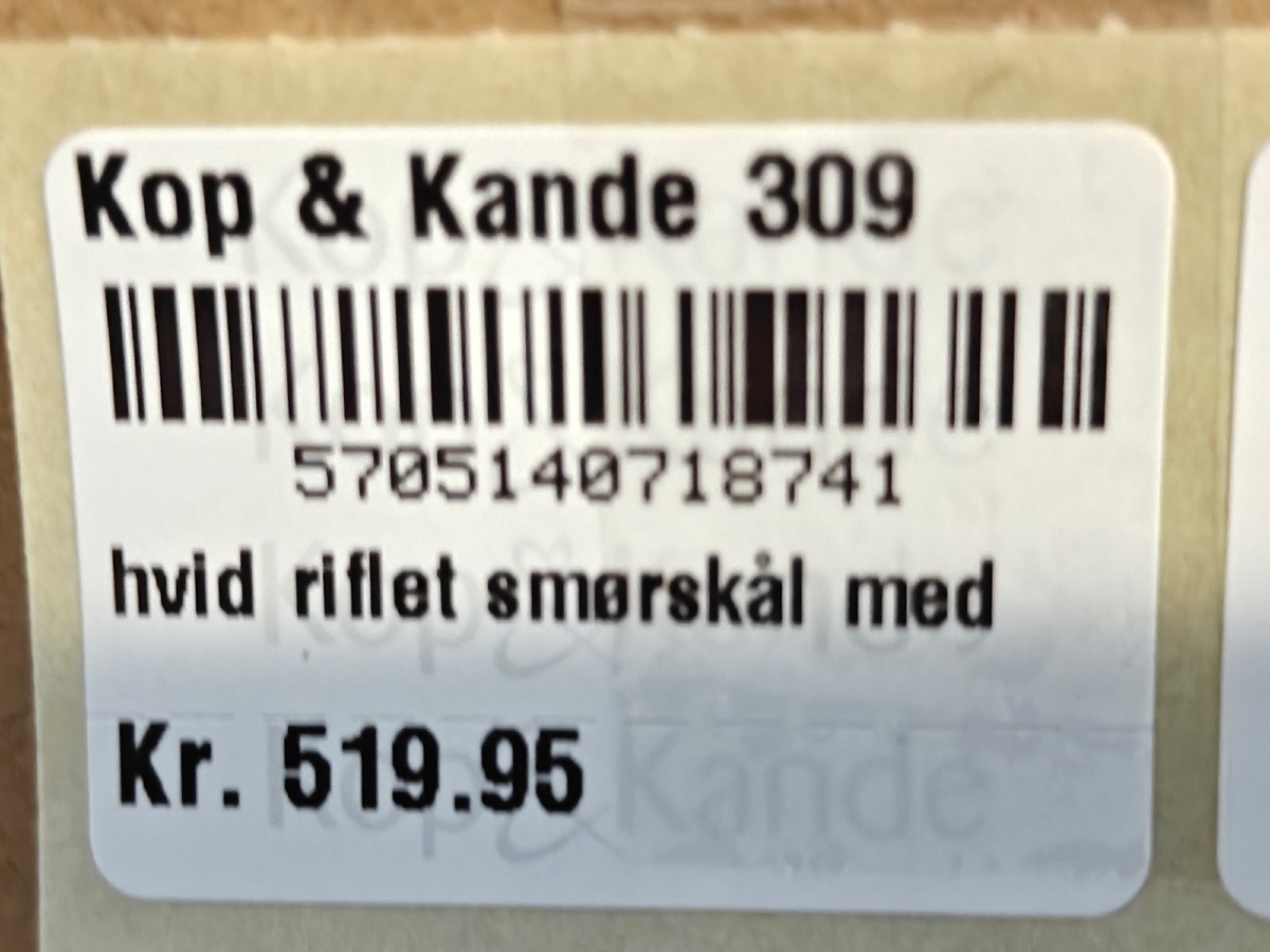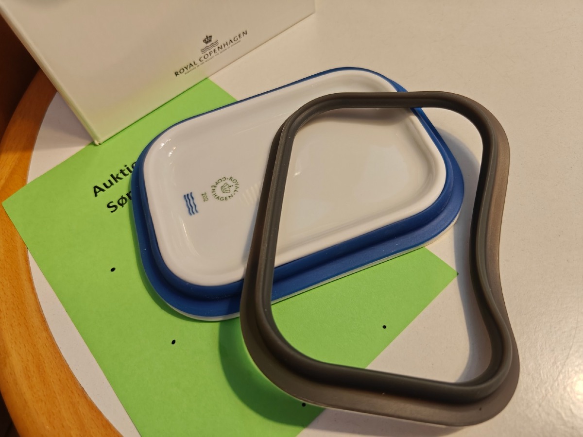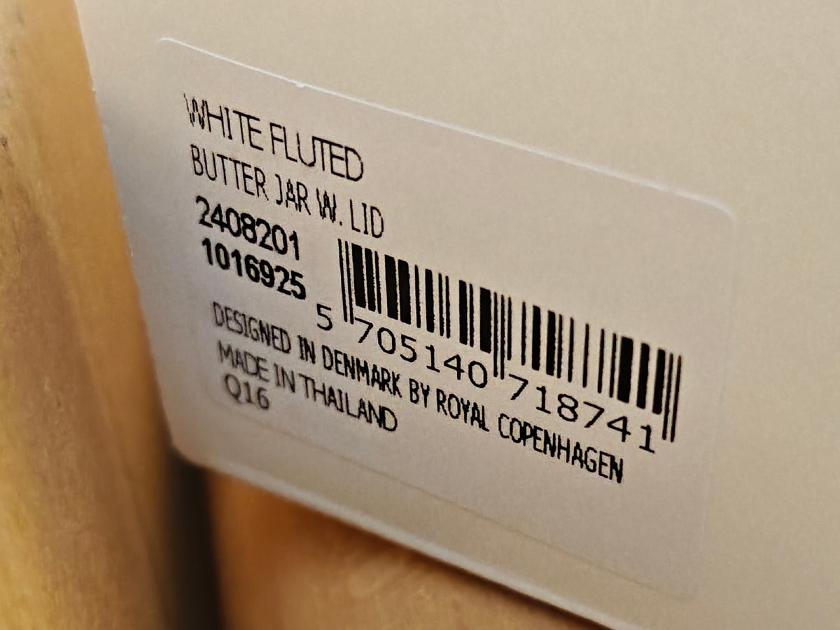 Royal Copenhagen, hvidt riflet smørskål, med blåt eller sort kant. Vejledende udsalgspris 519,95 - Ny, i original emballage og ubrugt. Oprydning fra isenkram butik.