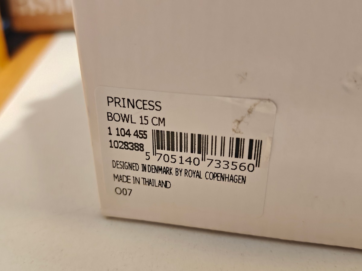 Royal Copenhagen, Princes skål 15 cm. Vejledende udsalgspris 499,95 Ny, i original emballage og ubrugt. Oprydning fra isenkram butik.