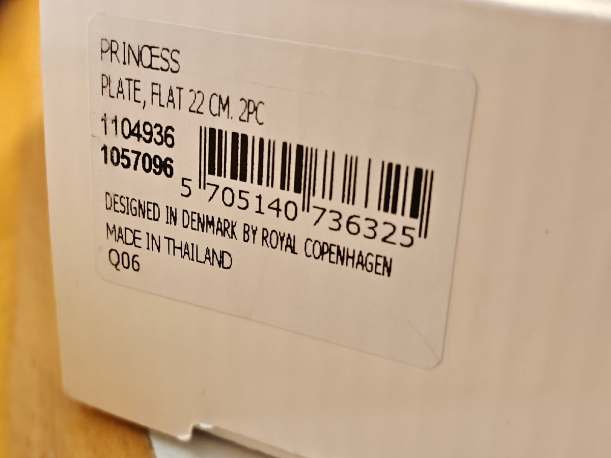 Royal Copenhagen, Prinsesse tallerkener 22 cm. Vejledende udsalgspris 1.038 - Ny, i original emballage og ubrugt. Oprydning fra isenkram butik.