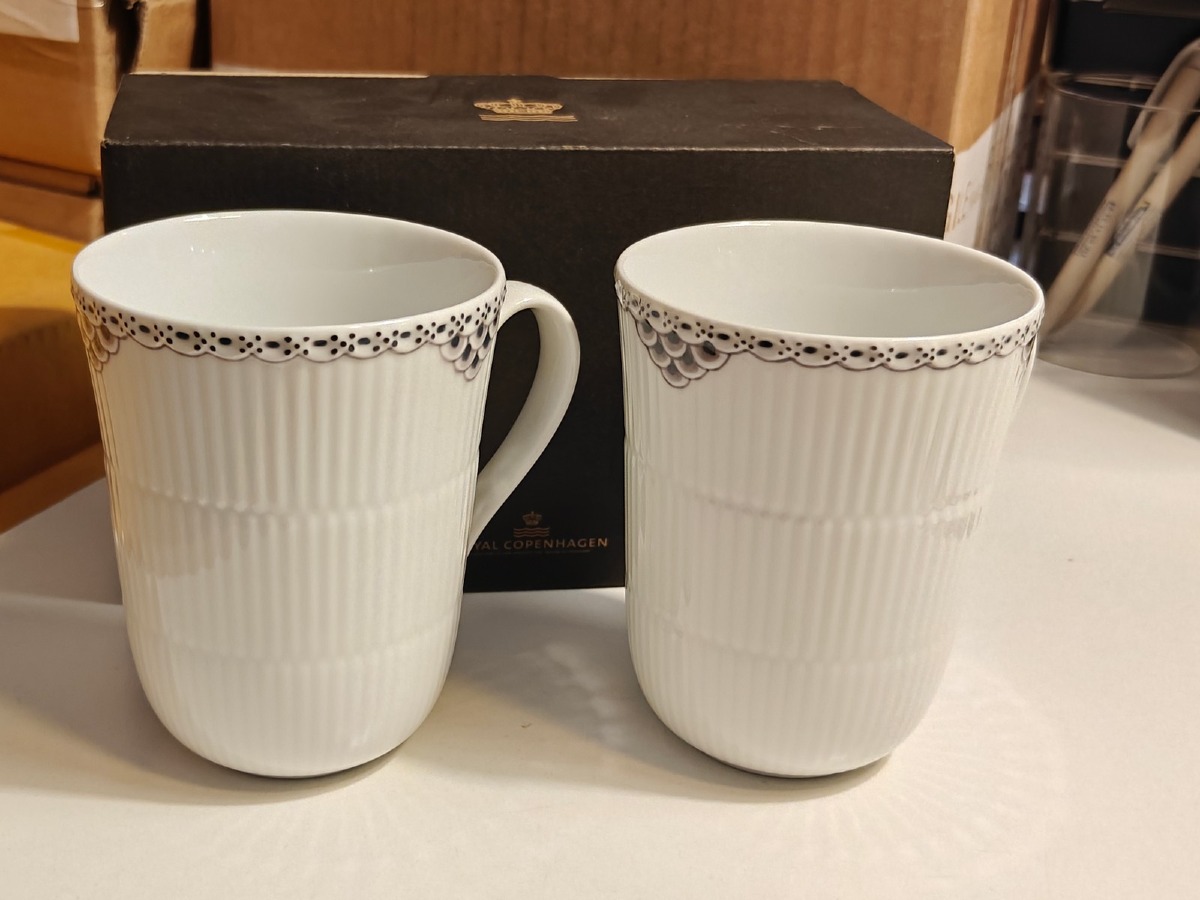 Royal Copenhagen, sort riflet blonde krus 33 cl, 2 stk. Vejledende udsalgspris 779,95 - Ny, i original emballage og ubrugt. Oprydning fra isenkram butik.