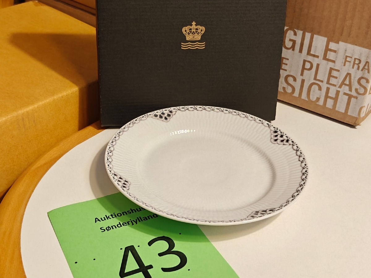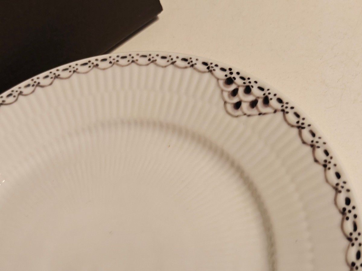 Royal Copenhagen, sort riflet blonde tallerken 19 cm
